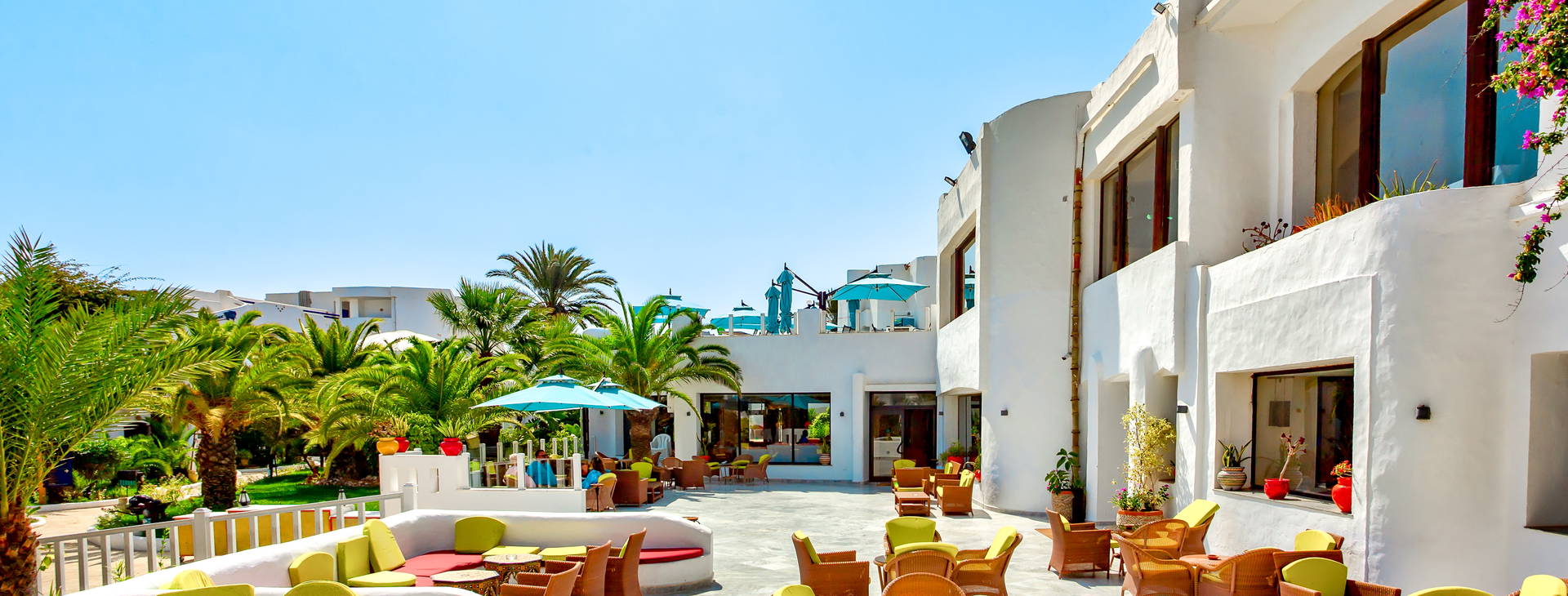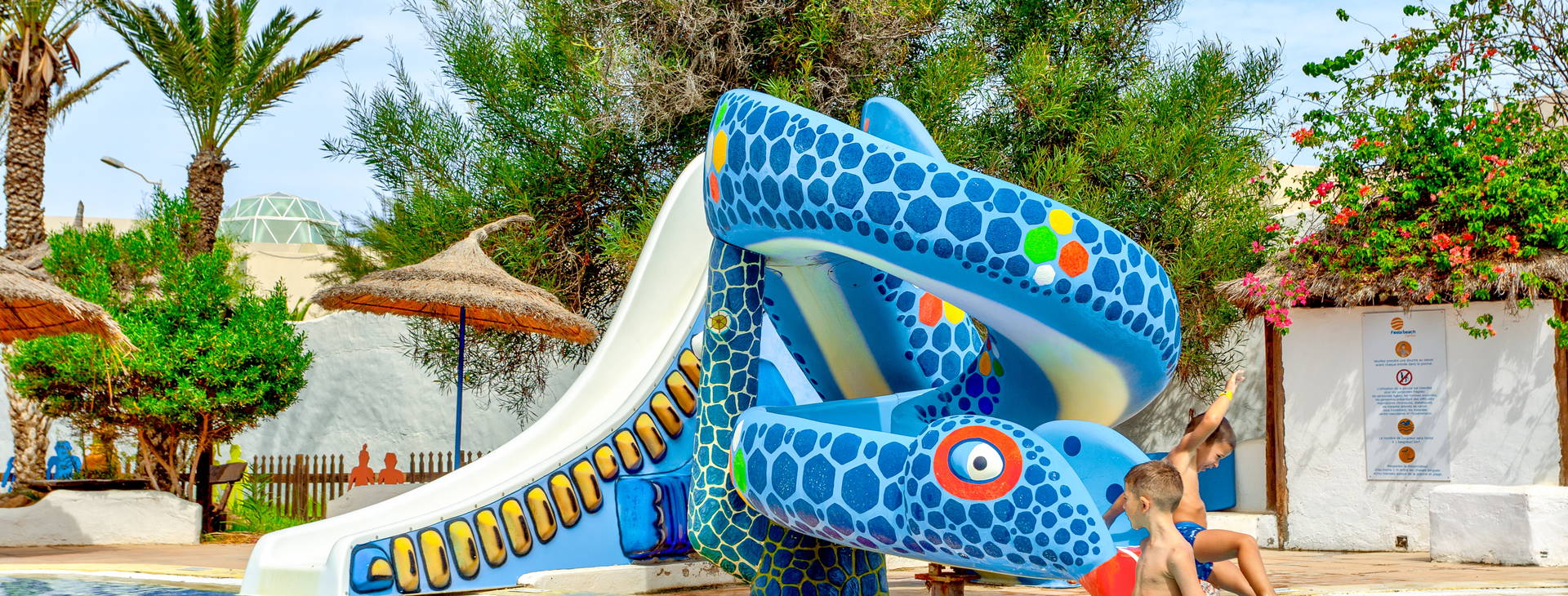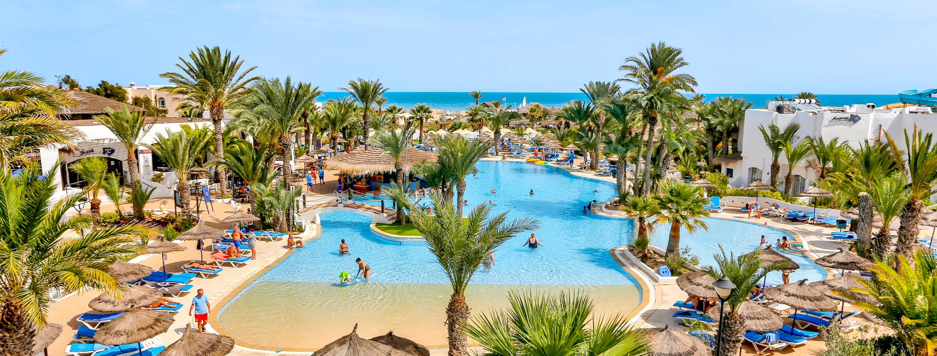 Príjemná prázdninová dedinka v rozľahlej palmovej záhrade pozostáva z približne tucta menších budov v tuniskom štýle. Hotel ponúka pestrú animačnú ponuku, niekoľko bazénov a aquapark; okrem toho sa priamo pri hoteli nachádza krásna piesočnatá pláž. Ideálne miesto na strávenie vydarenej dovolenky!
