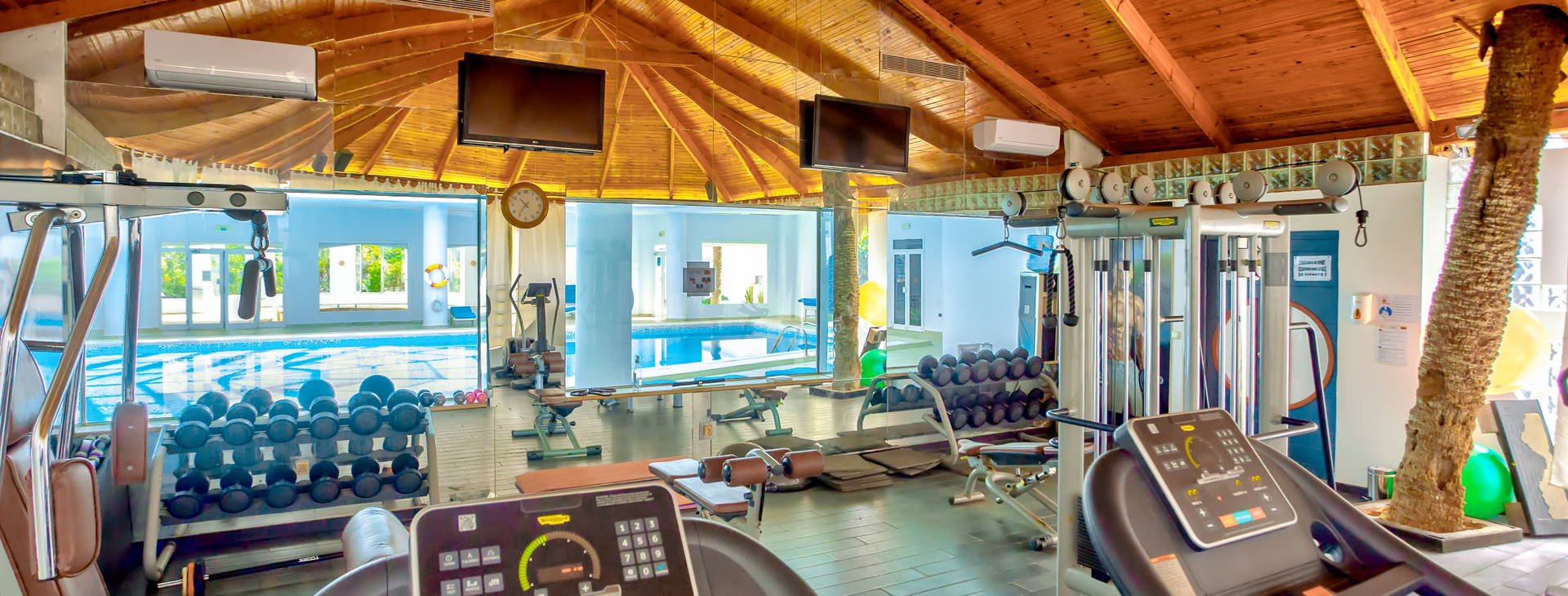Recepcia, vstupná hala, výťahy, hlavná reštaurácia, detská reštaurácia (otvorená v júli a auguste), 2 reštaurácie a la carte - patne ("Da Maria" - talianska a "Lapalapa" - rybia), reštaurácia - pizzeria (otvorená od mája do októbra), 4 bary: "lobby", bar pri bazéne, pri bazéne, na pláži), maurská kaviareň (za poplatok), 2 vonkajšie bazény: hlavný s rozlohou 1200 m2 s oddeleným detským bazénom, menší bazén "Relax" s rozlohou 360 m2, aquapark so šmykľavkami (pre deti od 12 rokov), ležadlá a slnečníky pri bazénoch zdarma.