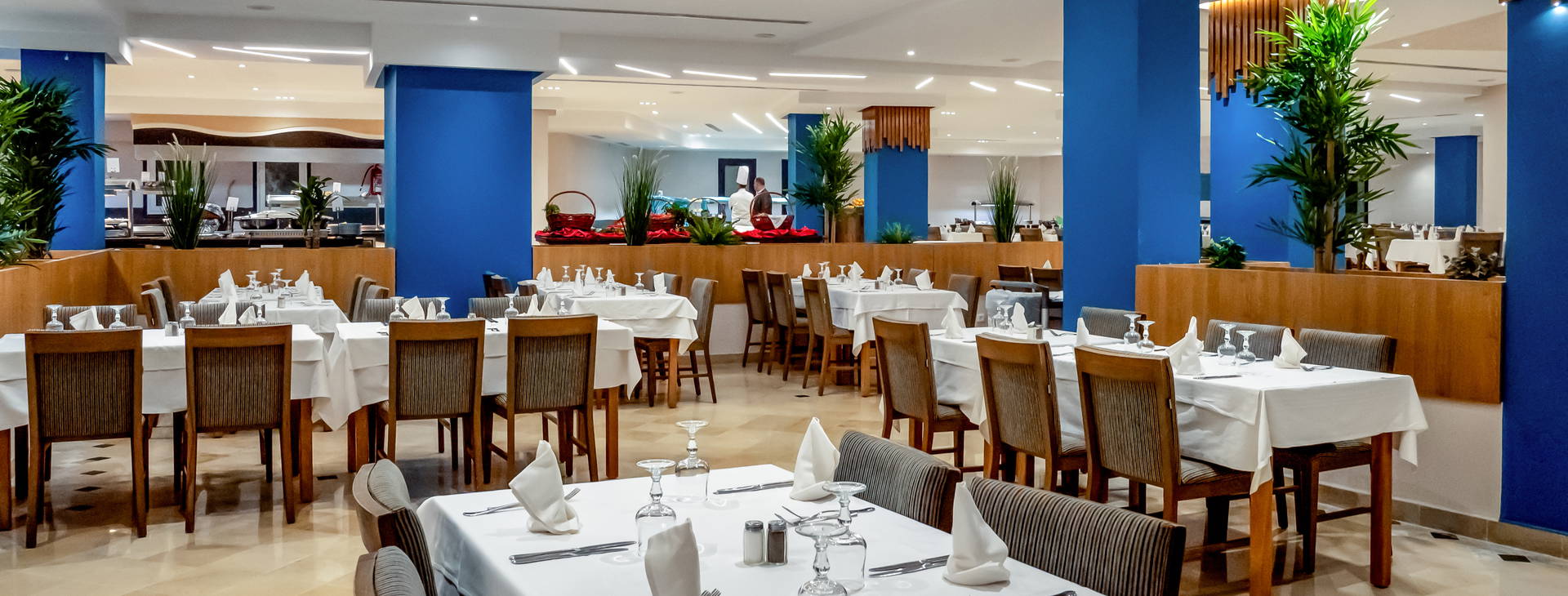 .All Inclusive:Raňajky (6:00 - 10:00), obedy (12:30 - 14:30) a večere (19:00 - 21:30) podávané formou bufetu v hlavnej reštaurácii. Neskoré kontinentálne raňajky (podávané na sladko od 10:15 - 11:30) a ľahké občerstvenie počas dňa (v určených časoch) v reštaurácii - pizzerii. Miestne nealkoholické a alkoholické nápoje (celkovo od 10:00 - 24:00) v určených baroch. 1x za pobyt možnosť vychutnať si večeru v a la carte reštaurácii Da-Mario.