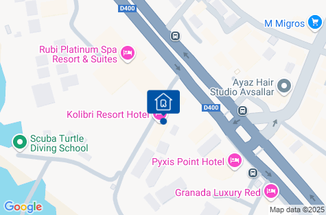 Hotel Kolibri sa nachádza v malom mestečku Avsallar, obklopenom kopcami so sviežou zelenou vegetáciou. Je vzdialený približne 0,5 km od centra s obchodmi a barmi. Známe letovisko Alanya je vzdialené približne 25 km od hotela. Letisko v Antalyi je vzdialené približne 100 km.