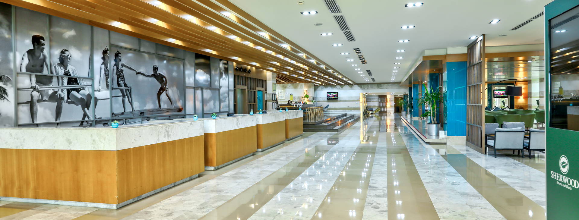 Recepcia, hlavná reštaurácia Marca, 3 reštaurácie a'la carte: Safran, Pomodoro, Marine (bez príplatku raz týždenne v jednej reštaurácii, rezervácia nutná, otvorené 19:00-21:00), reštaurácia s občerstvením Splash, Sherfood Streetfood a cukráreň. 4 bary: lobby bar Carisma , bar Wave, bar Sense a bar Lemon Flower. K dispozícii je aj kaviareň Bridge. Bazén pre dospelých, detský bazén, 2 bazény so šmykľavkami (4 šmykľavky pre dospelých, 3 pre deti) k dispozícii pre hostí. Ležadlá, sprchy a uteráky k dispozícii bez príplatku. Oddelená detská vodná časť a časť s vírivkou v budove. Za príplatok: služby práčovne a stráženie detí.