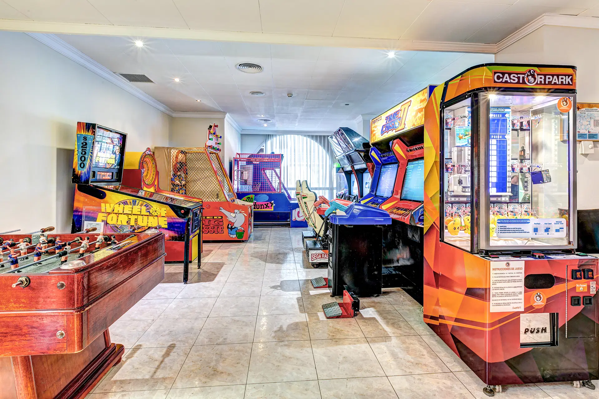 Priestorová recepcia s lobby, 5 barov, výťahy, 2 bufetové reštaurácie (jedna otvorená len v júli a auguste), reštaurácia a'la carte (nutná rezervácia, otvorená v júli a auguste), riečny bazén vinúci sa v dĺžke 750 m a spájajúci 2 bazény (jeden s barom), animačný bazén (napr. vodné pólo), bazén s 3 šmykľavkami a veľký nekonečný bazén (1000 m2), 2 vírivky. Sladká voda v bazénoch. Tiež 2 veľké slnečné terasy v palmovej záhrade s ležadlami a slnečníkmi, miniklub (júl-august, len cez víkendy), detské ihrisko, služba stráženia detí (za poplatok), izbová služba (za poplatok, k dispozícii 09:00-11:00, 19:00-21:00), garáž (za poplatok), služba prania a žehlenia (za poplatok), obchod so suvenírmi, požičovňa áut a bicyklov. Internetové pracoviská (2 pracoviská na mince na recepcii - poplatok cca 2 eurá/15 minút) a wifi v celom hoteli (poplatok 1 deň/9 eur, týždeň/30 eur). Hotel poskytuje uteráky k bazénu (záloha + cca 1 euro za výmenu). Na pláži sú k dispozícii ležadlá a slnečníky za poplatok cca 5 eur/osoba.