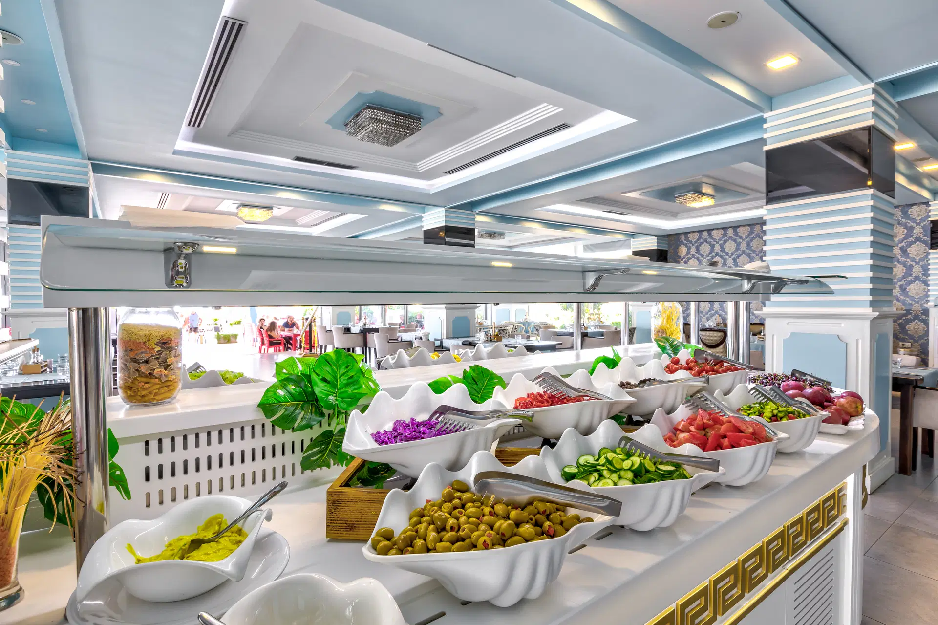 .V areáli komplexu: recepcia, 2 reštaurácie (vrátane jednej a'la carte - za poplatok), bar, bazén pre dospelých, bazén pre deti, 2 konferenčné miestnosti, parkovisko.