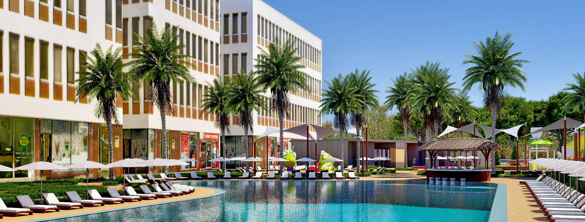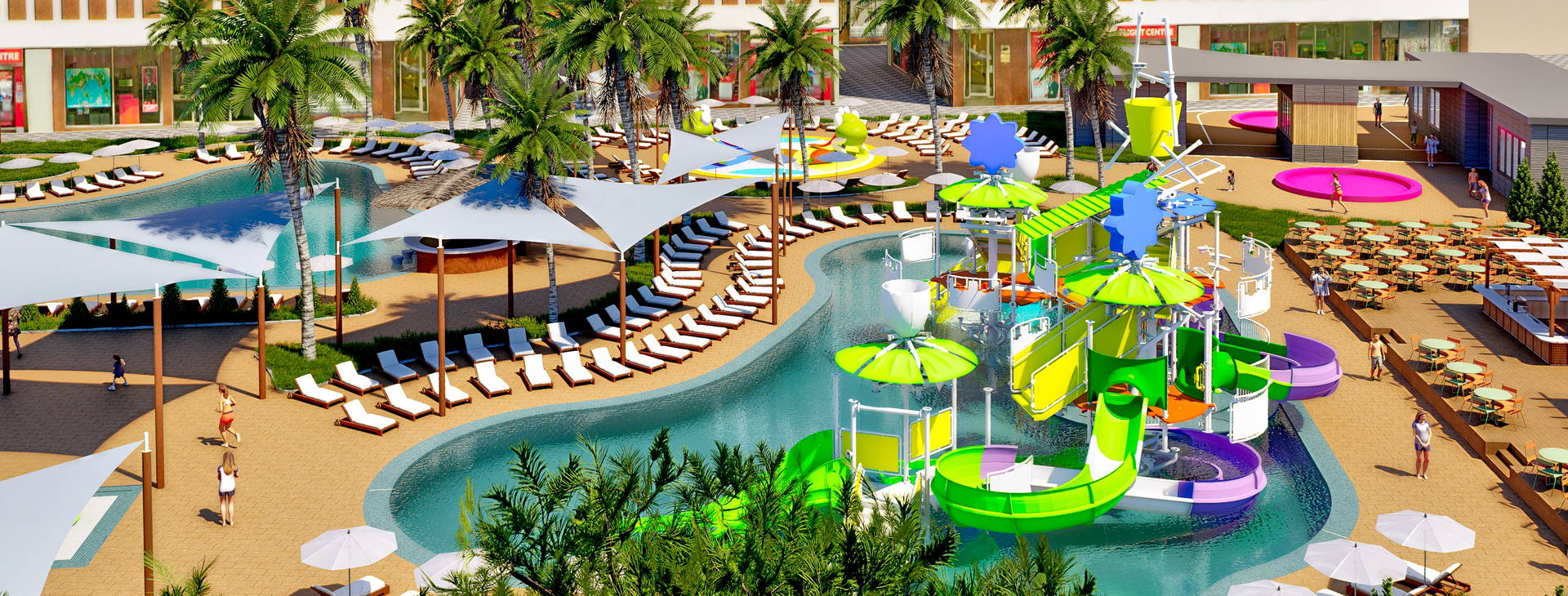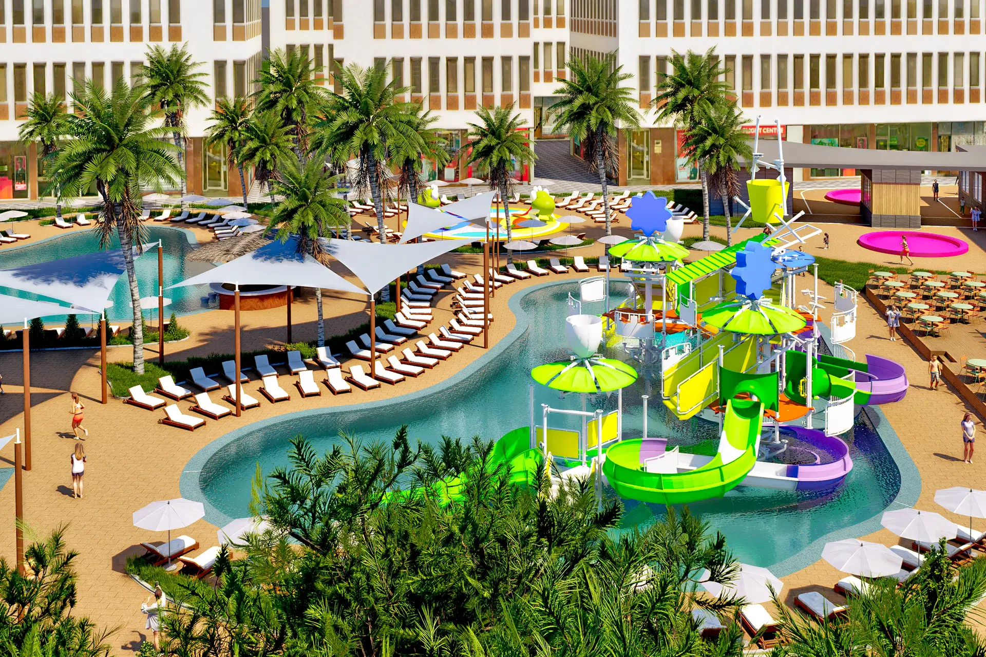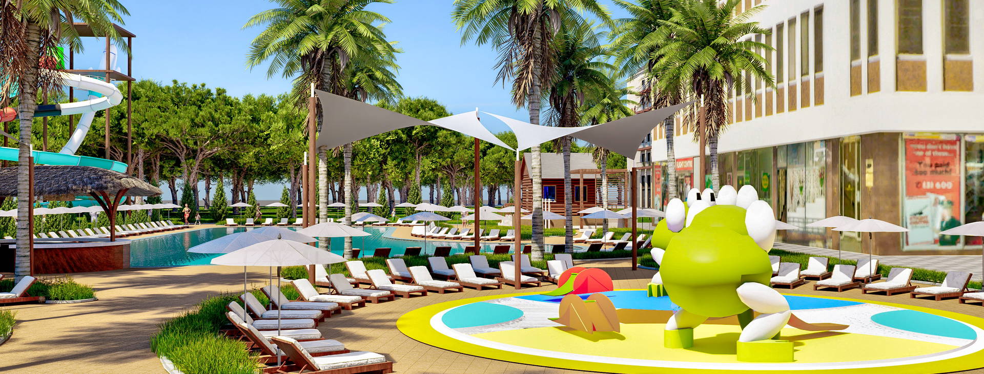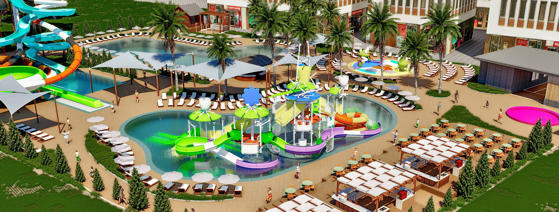 Aquapark so šmykľavkami, krytý bazén, posilňovňa, SPA centrum za príplatok.