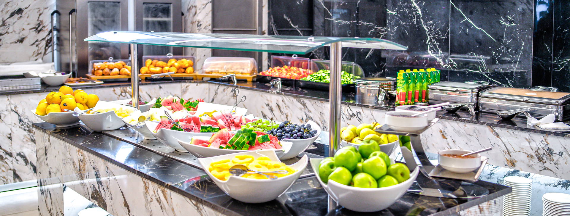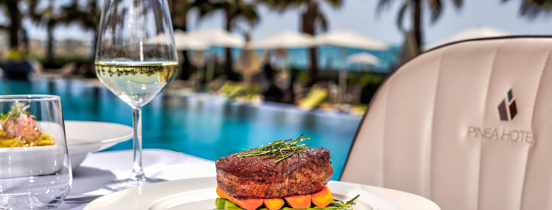 Všetko zahŕňa: raňajky (7:30 - 9:30), obed (12:30 - 14:00), večeru (19:00 - 21:00). Jedlá sa podávajú formou bufetu. Bar (10:00 - 22:00). V bare sa podávajú studené a teplé nápoje, ako aj miestne alkoholické nápoje. Večeru si môžete vychutnať v a'la carte reštaurácii (v cene je zahrnutá jedna večera počas pobytu).