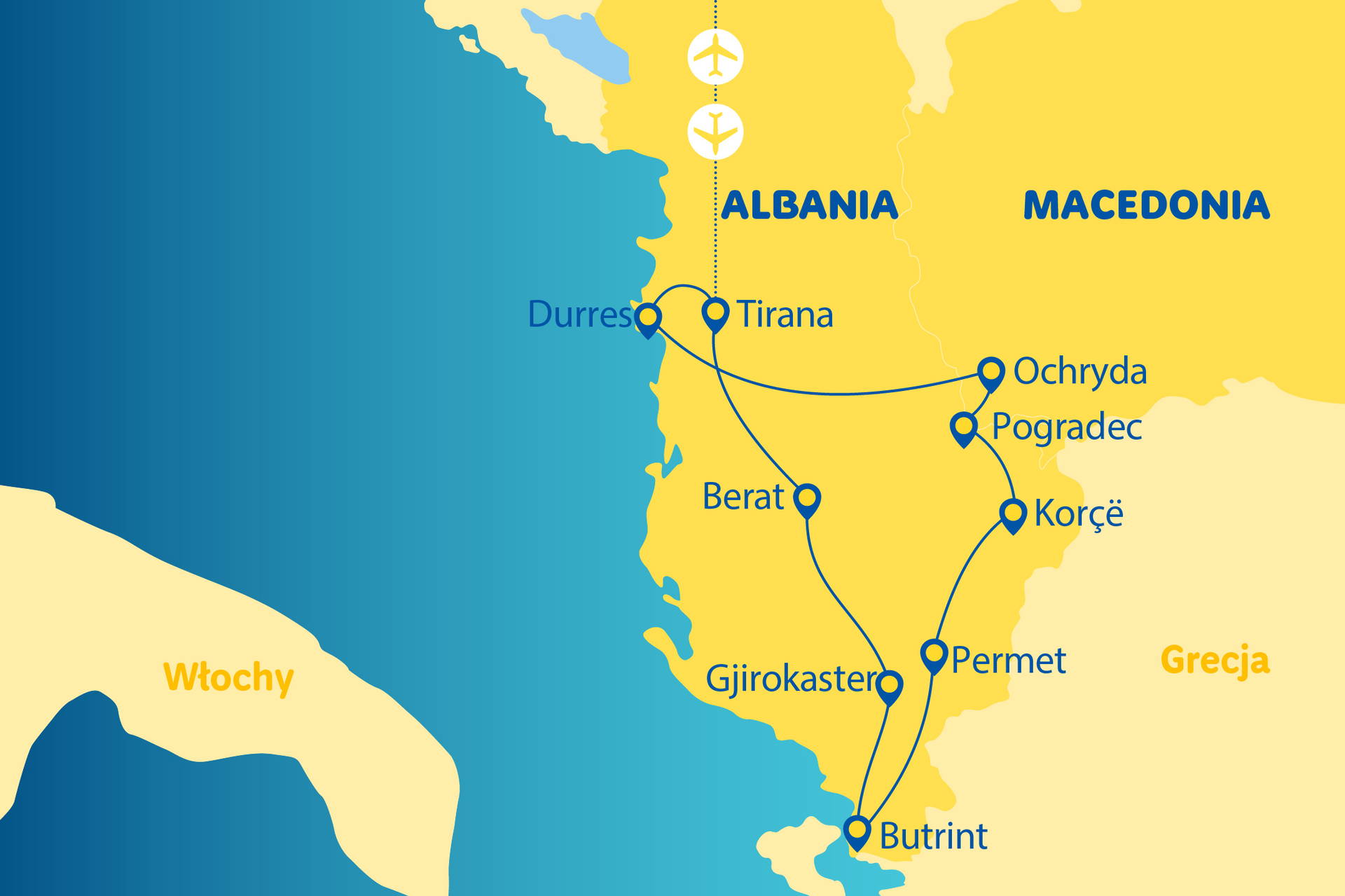 Tirana • Berat - „Město tisíce oken“ • trekking v Národním parku Tomorr • rafting po řece Vjosa • přejezd džípy nejkrásnější vyhlídkovou trasou Albánie - Green Line • Ohridské jezero a Ohrid • odpočinek v Drači