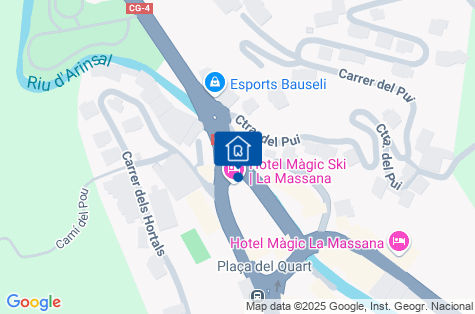 Hotel má vynikajúcu polohu v centre La Massana, v bezprostrednej blízkosti zjazdoviek Vallnord a stanice lanovky Pal - Arinsal (20 m od hotela), čo z neho robí vynikajúcu voľbu pre milovníkov zimných športov (prístup k približne 63 km zjazdoviek). Poloha hotela umožňuje aj prístup na zjazdovky Ordino Arcalis (vzdialené približne 17 km) a prístup k ďalším približne 30 km zjazdoviek (autobusová zastávka približne 100 m od hotela; vstup zdarma). Okrem toho sa v mestečku a jeho okolí nachádza množstvo reštaurácií, barov, diskoték a obchodov. Hlavné mesto Andorra la Vella je vzdialené len cca 6 km (autobusová zastávka v blízkosti hotela; cestovné cca 2 EUR/osoba v jednom smere). Transfer z letiska v Barcelone trvá približne 3,5 hodiny.