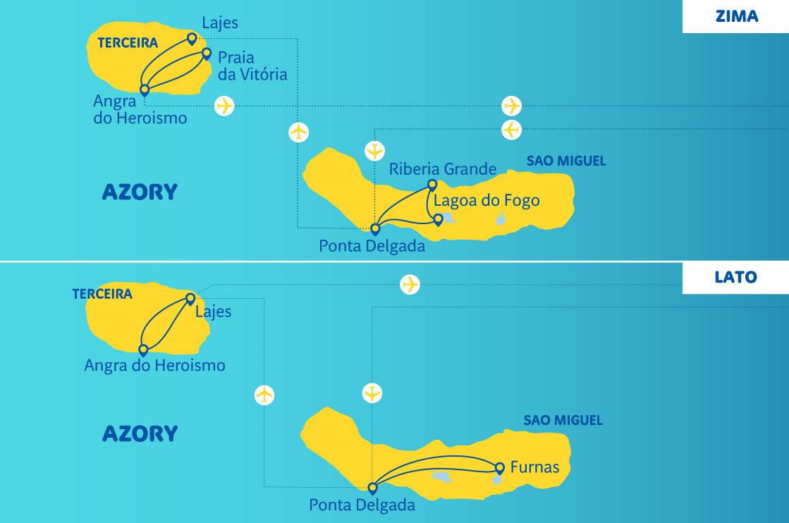Cena zahrnuje: let pravidelnou linkou, letištní poplatky, ubytování v *** hotelech na ostrově Sao Miguel (Azory) a na ostrově Terceira (Azory) v hotelu ***** (7 započatých hotelových dní), transfery klimatizovaným autokarem nebo minibusem, stravování: snídaně, turistický program dle výše uvedeného, doprovod polského pilota a rezidenta během pobytu, pojištění TU Europa (NNW, KL, CP, Assistance a zavazadla).