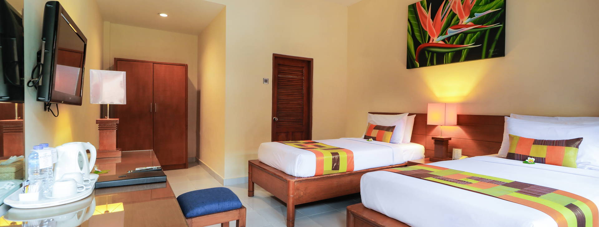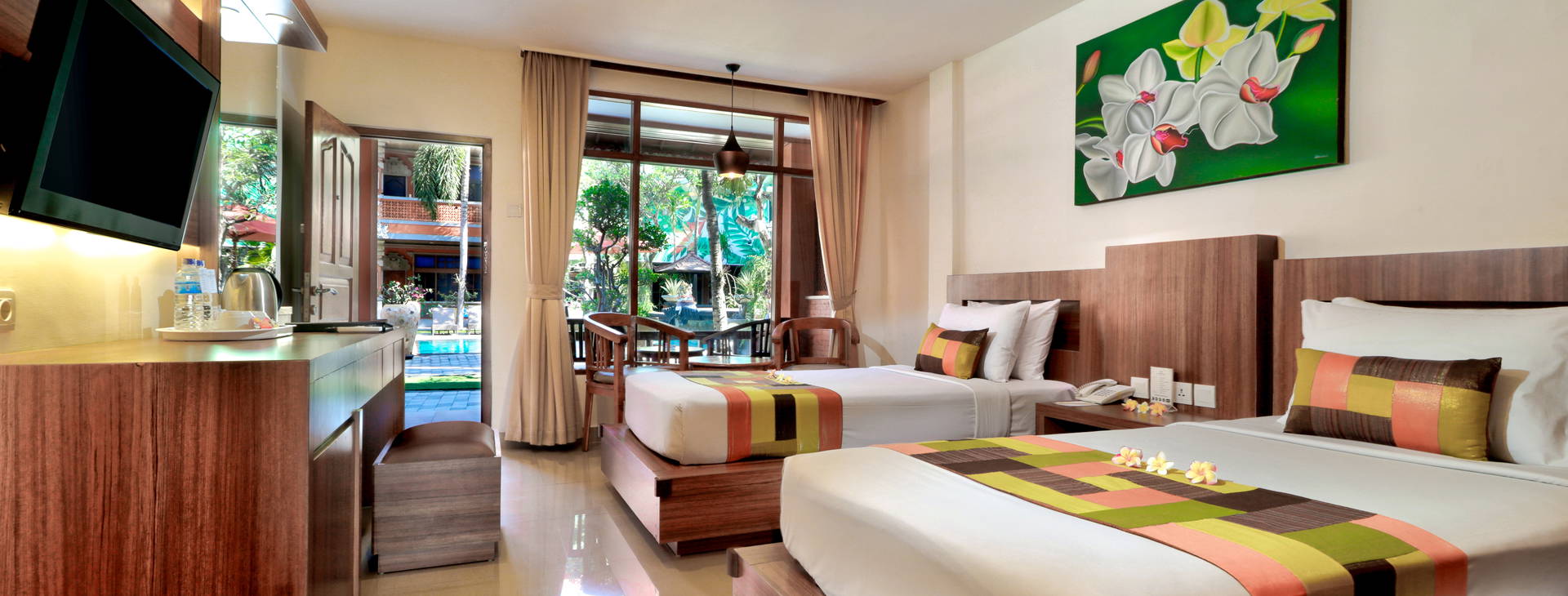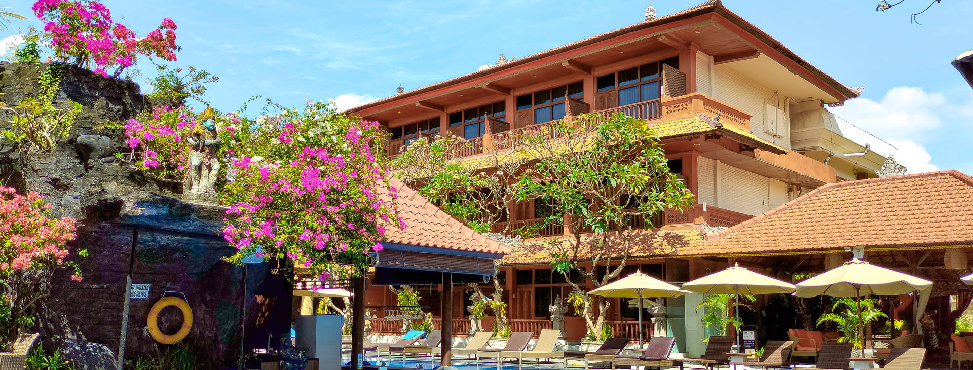 Tento komorný hotel s tradičnou balijskou architektúrou sa nachádza približne 8 km od letiska. Hotel sa nachádza v meste Kuta v južnej časti ostrova Bali. Táto bývalá rybárska dedina je dnes jedným z najznámejších letovísk na ostrove pre svoje rozmanité ubytovanie, očarujúce reštaurácie a množstvo barov a diskoték.