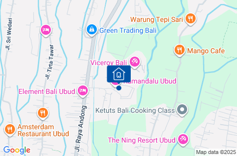 Luxusná nehnuteľnosť postavená v štýle tradičnej balijskej dediny s nádherným výhľadom na tropický les a terasovité ryžové polia. Hotel sa nachádza na pozemku s rozlohou 3,5 hektára na svahu údolia rieky Petanu, približne 3 km od centra mesta Ubud (kam premáva bezplatný hotelový autobus) a približne 40 km od letiska Denpasar.