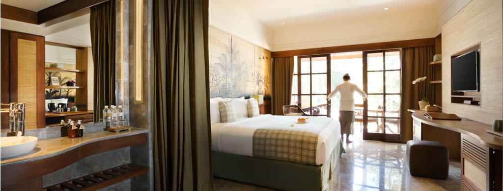 .Hodinová recepcia, 2 bazény (vrátane jedného nekonečného bazéna), terasa s ležadlami a slnečníkmi pri bazénoch (v cene). Hotelová reštaurácia Herb Library ponúka výber vegetariánskych jedál a jedál z kuracieho mäsa a rýb s použitím miestnych a sezónnych surovín, ako aj jedlá v súlade so zásadami ajurvédskej medicíny. V hoteli sa nachádza pavilón na cvičenie jogy a kúpeľné centrum. Za poplatok je k dispozícii požičovňa bicyklov a izbová služba. Hotel prijíma kreditné karty.