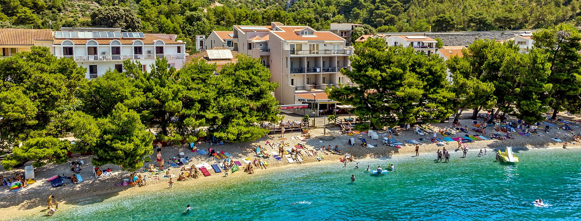 Hotel Jadran je vzdálen cca 350 m od oblázkové pláže, na kterou vozí naše hosty bezplatný hotelový autobus. Lehátka na pláži - za poplatek (cca 2 EUR).