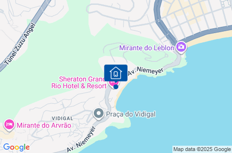 .Hotel sa nachádza 50 m od piesočnatej pláže Vidigal, ktorá sa nachádza západne od Ipanemy. Pláž je obklopená najluxusnejšími hotelmi, reštauráciami či barmi v Riu de Janeiro. Hotel Sheraton Rio je jediný, ktorý má priamy prístup na pláž.
