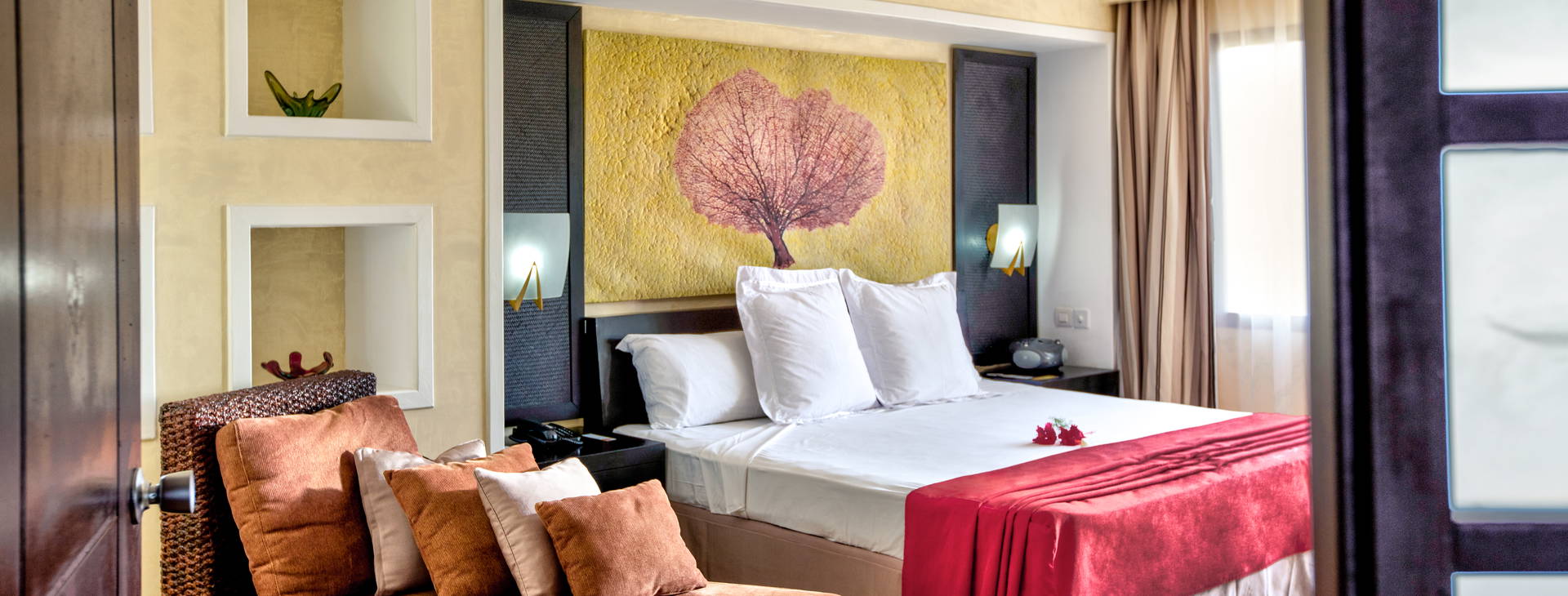 Pokoje typu Superior (o rozloze cca 40 m²) - možnost ubytování 2 + 2, ale pokoj bude max. 2 manželské postele typu queen size. Větší než standardní pokoje a umístěné blíž pláže.