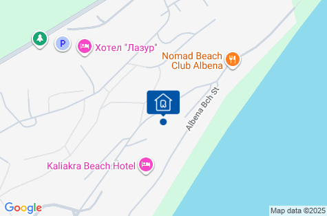 Hotel sa nachádza v Albene na pobreží Čierneho mora, priamo na piesočnatej pláži (v prvej línii pobrežia). Hotel je vzdialený približne 40 km od letiska Varna a približne 15 km od mesta Balčik. K najbližšej autobusovej zastávke, z ktorej sa dostanete do neďalekých Zlatých pieskov, je to približne 1 km (prechádza cez rekreačnú oblasť v Albene) . Pred hotelom sa nachádza krásna široká pláž, v zadnej časti sú malebné kopce.