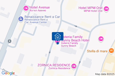 Hotel sa nachádza v centre letoviska Slnečné pobrežie neďaleko pláže, takže je ideálnym miestom na strávenie dovolenky. Nachádza sa v blízkosti obľúbených miest, ktoré sa oplatí objavovať a spoznávať, ako napríklad Nesebar (5 km) a Burgas (40 km). Hotel je vzdialený 32 km od letiska Burgas a približne 100 km od letiska Varna.