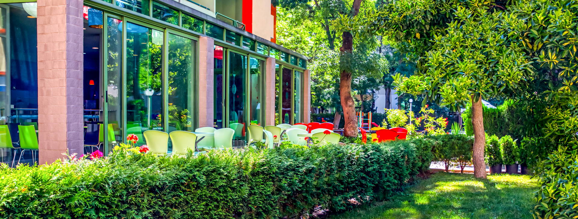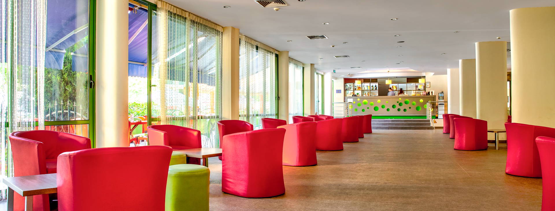 .24-hodinová recepcia, 3 výťahy, zmenáreň, priestranná hlavná reštaurácia s terasou, bistro, lobby bar. Vonkajší bazén s lagúnou, slnečnou terasou, detským brodítkom a mini šmýkačkou. Lehátka, slnečníky a pri bazéne - zdarma.