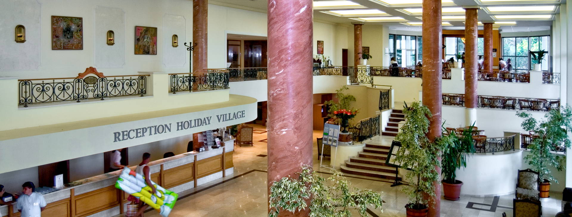 .Hosťom sú k dispozícii zariadenia 4 hotelov v komplexe Duni: Holiday Village, Marina Beach, Pelican, Belleville. 24-hodinová recepcia, záhrada, 3 vonkajšie bazény s detským brodítkom; aquapark so šmykľavkami (otvorený 01.06-15.09); 3 hlavné reštaurácie a 2 reštaurácie a'la carte, bary vo vstupnej hale každého zo 4 uvedených hotelov, bar pri bazéne, snack bar na pláži (za poplatok), kaviareň, posilňovňa, parkovisko. Za poplatok: kúpele, zmenáreň, obchod so suvenírmi, minimarket, práčovňa.