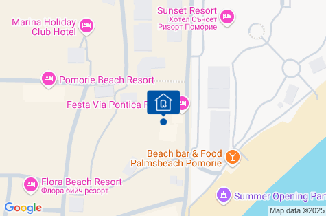 Veľmi kvalitný hotel postavený v roku 2010, patriaci do známej bulharskej hotelovej siete "Festa", sa nachádza v rozľahlej zelenej oblasti priamo pri pláži (cca 50 m) a neďaleko (cca 3 km) od malého turistického mesta Pomorie. V areáli hotela sa nachádza tradičná miestna vinica postavená v roku 1932. Približne 250 m od hotela sa nachádza zastávka miestnej dopravy. Hotel je vzdialený približne 10 km od medzinárodného letiska Burgas.