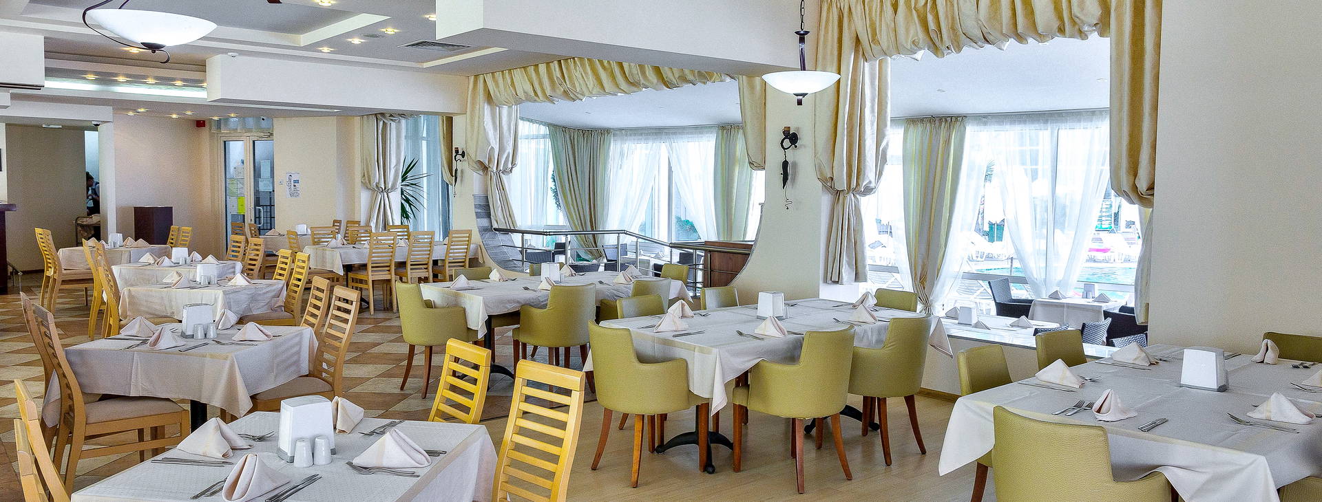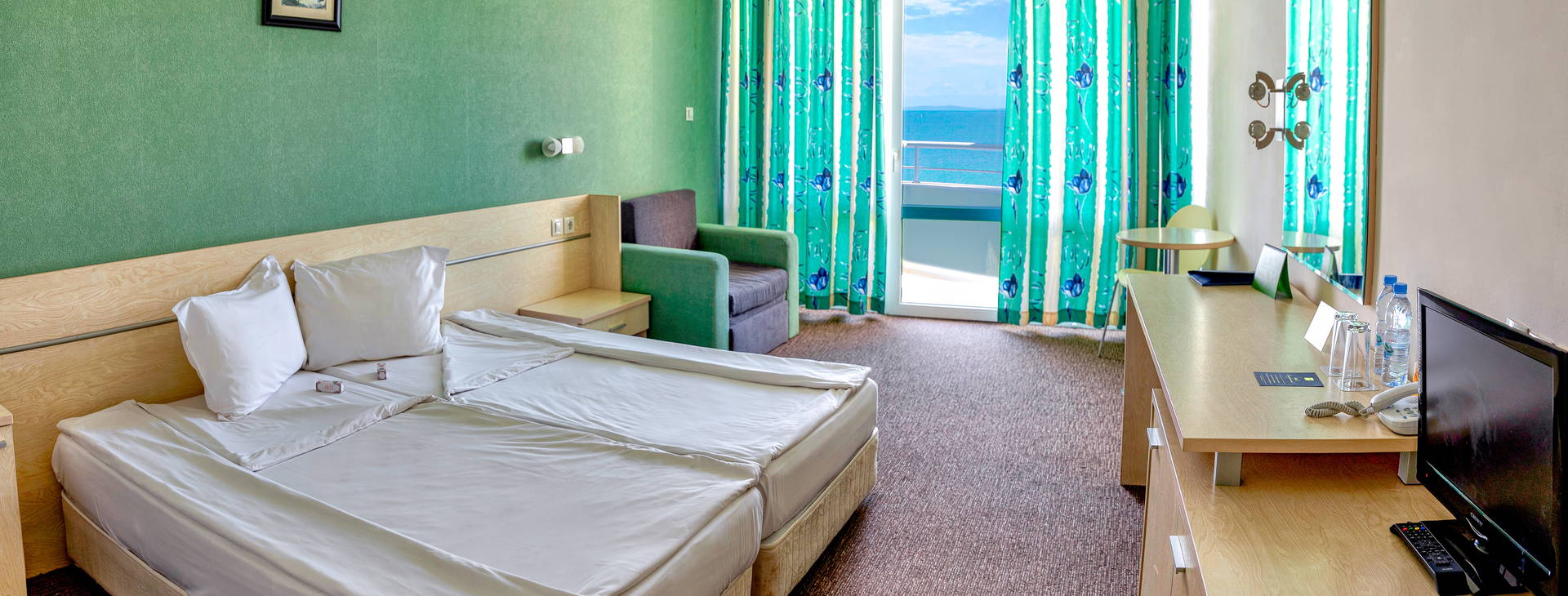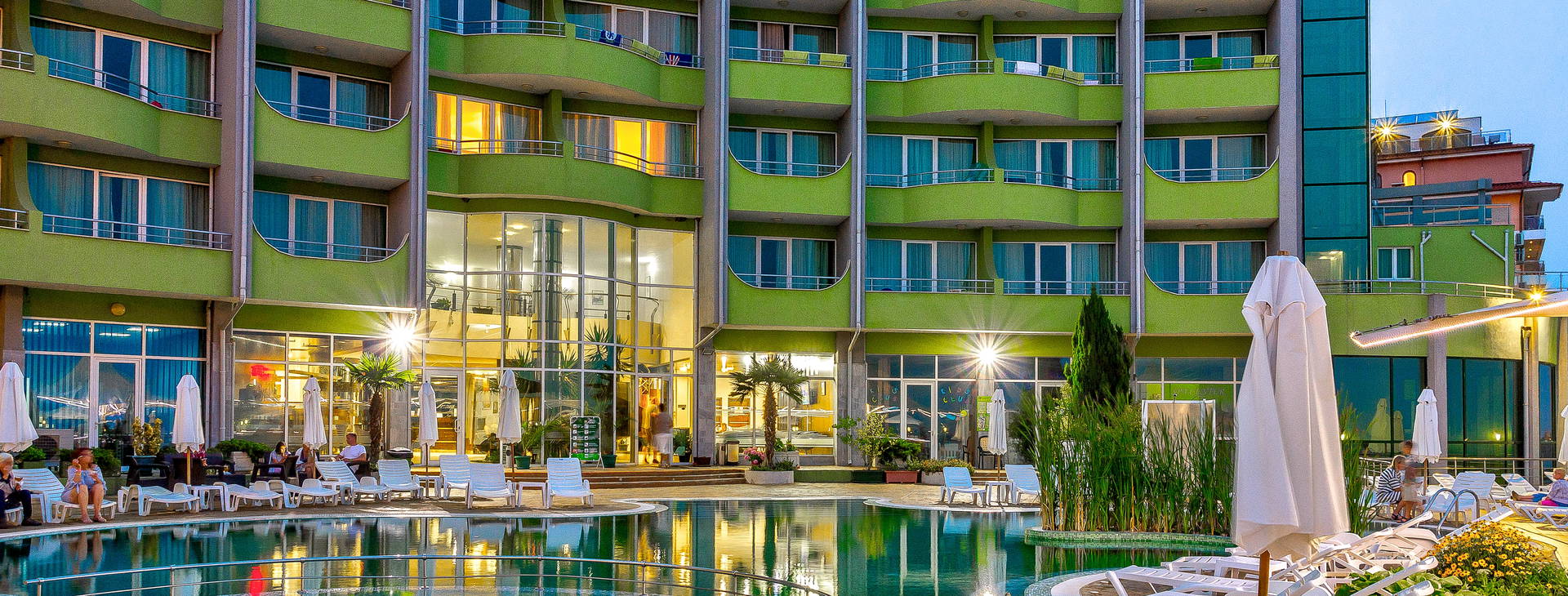 .24-hodinová recepcia, reštaurácia s terasou, bary, uteráky pri bazéne na kauciu, stánok na pláži, hotelový trezor (za poplatok), TV miestnosť, požičovňa áut, konferenčná miestnosť. Domáce zvieratá nie sú akceptované. Parkovanie v areáli hotela za poplatok cca 10BGN/deň.