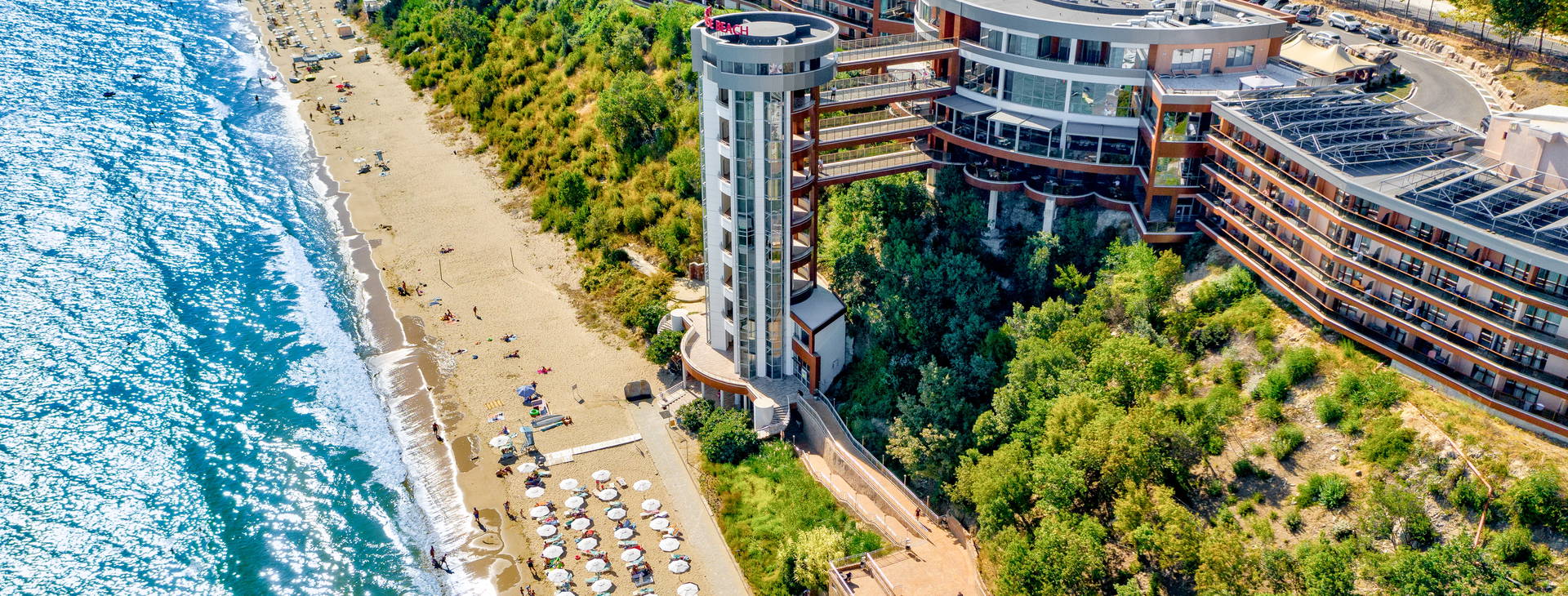 Hotel sa nachádza na pokojnom mieste, v blízkosti malého turistického mestečka Sveti Vlas (cca 3 km do centra), priamo pri krásnej pláži. Nachádza sa približne 10 km od centra Slnečného pobrežia, približne 50 km od letiska v Burgase a približne 100 km od letiska vo Varne.
