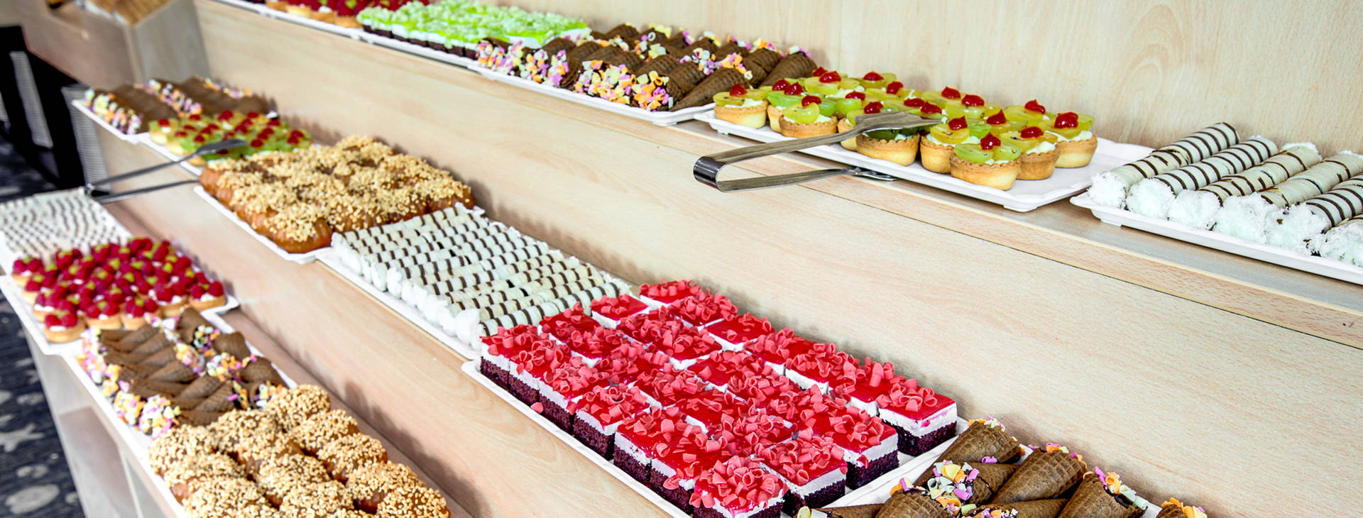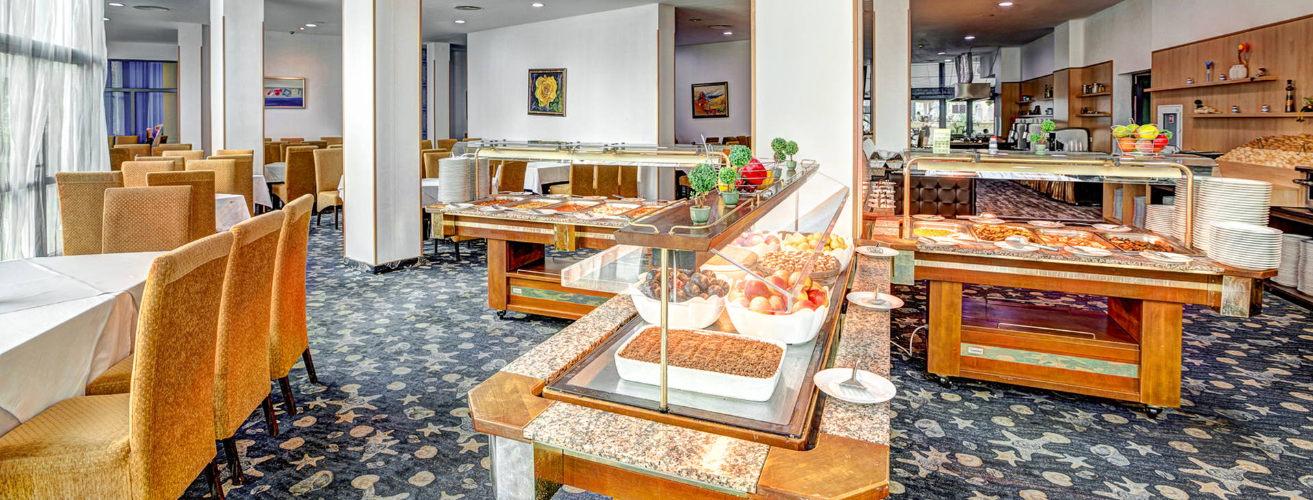 All Inclusive: raňajky (07:30-10:00), obed (12:30-14:30), večera (18:30-21:00) podávané v hlavnej reštaurácii formou pestrého bufetu. Počas dňa (10:00-12:00 a 15:00-17:00) studené a teplé občerstvenie podávané v určených baroch a zmrzlina (10:00-18:00) k dispozícii v bare pri bazéne. Nealkoholické nápoje a miestne alkoholické nápoje (a importované alkoholické nápoje od 10.07. do 20.08.) podávané v bare pri bazéne od 10:00 do 23:00. Za príplatok: cukráreň podávajúca sladké pečivo, kávu, čaje a alkoholické a nealkoholické nápoje (otvorené 08:00-11:00; 17:00-21:00).