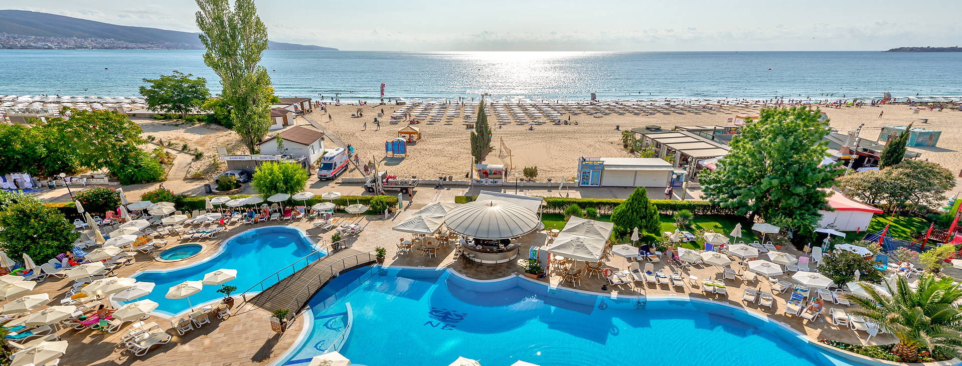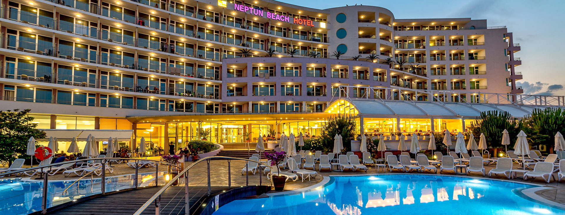 Hotel Neptun Beach sa nachádza v srdci Slnečného pobrežia a má strategickú polohu - len asi 5 km od pôvabného Nesebaru a asi 25 km od Burgasu.