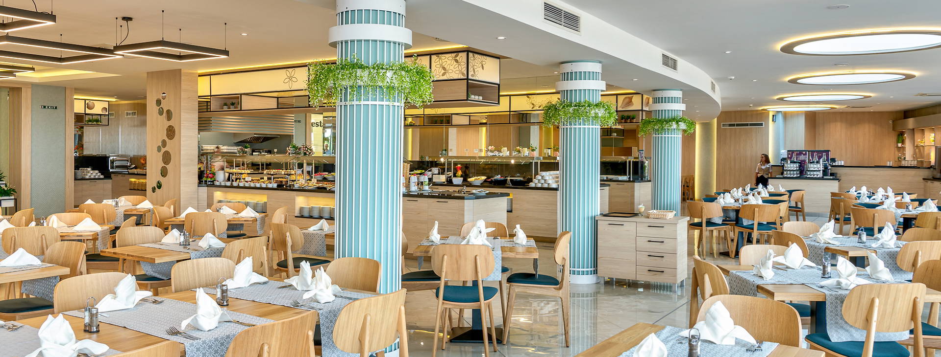 Raňajky formou bufetu (07:30 - 10:00), neskoré raňajky (10:00 - 11:00), obed formou bufetu (12:30 - 14:30), večera formou bufetu (18:00 - 21:00), občerstvenie (11:00 - 14:30). Hostia sú povinní nosiť na jedlo dlhé nohavice. Zmrzlina pre deti je k dispozícii od 09:00 do 18:00 a v čase obeda. V reštaurácii: - Na raňajky: káva, čaj, mlieko, minerálna voda z automatu a džús; v bare reštaurácie: káva, čaj, mlieko, minerálna voda z automatu a džús: - v čase obeda a večere miestne alkoholické nápoje, čapované pivo, nealkoholické nápoje;V bare na terase reštaurácie: - V bare pri bazéne: od 11:00 do 23:00 - miestne alkoholické nápoje, čapované pivo, nealkoholické nápoje;V bare pri bazéne: od 11:00 do 23:00 - miestne alkoholické nápoje, čapované pivo, nealkoholické nápoje: - Hotel si vyhradzuje právo odmietnuť podávanie alkoholických nápojov osobám mladším ako 18 rokov.