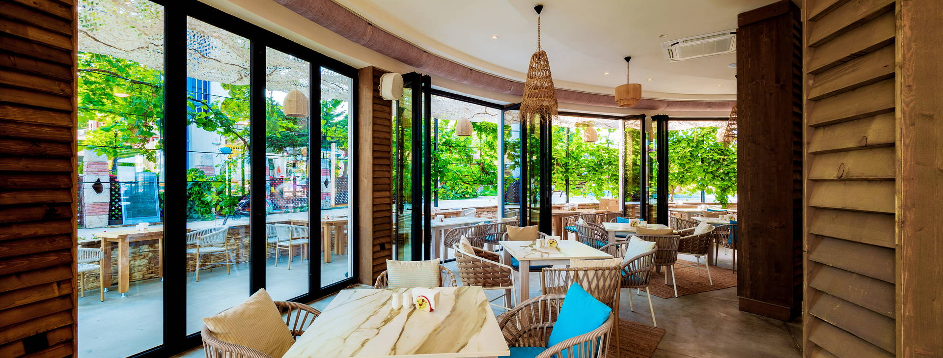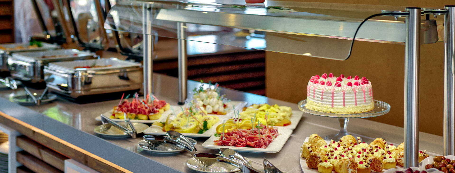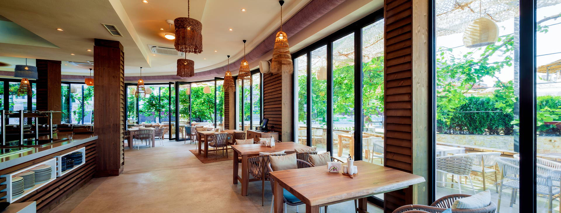 .Ultra All Inclusive zahŕňa: raňajky (07:30-10:30), obed (12:00-14:00) a večeru (18:00-21:00) formou pestrého bufetu v hlavnej hotelovej reštaurácii, ktorá sa špecializuje na medzinárodnú kuchyňu. Hotel ponúka aj grill bar na pláži a cukráreň "Viennese" (07:00-01:00). Miestne alkoholické a nealkoholické nápoje sú k dispozícii v lobby bare (07:00-24:00), bare pri bazéne (11:00-17:00) a Piano bare. Hotel ponúka 2 a la carte reštaurácie: stredomorskú a ázijskú reštauráciu (jedna bezplatná večera vo vybranej a la carte reštaurácii je k dispozícii pre hostí s minimálne 7 nocí pobytu v hoteli po predchádzajúcej rezervácii). Za príplatok je k dispozícii večera pri sviečkach na pláži a a la carte reštaurácia "Surf &; Turf".