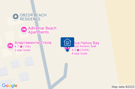 Hotel Alua Helios Bay sa nachádza na jedinečnom mieste. Nachádza sa v meste Obzor, priamo na jednej z najdlhších pláží v Bulharsku. Vzdialenosť od letiska Burgas je približne 62 km, zatiaľ čo od letiska Varna je to približne 65 km.