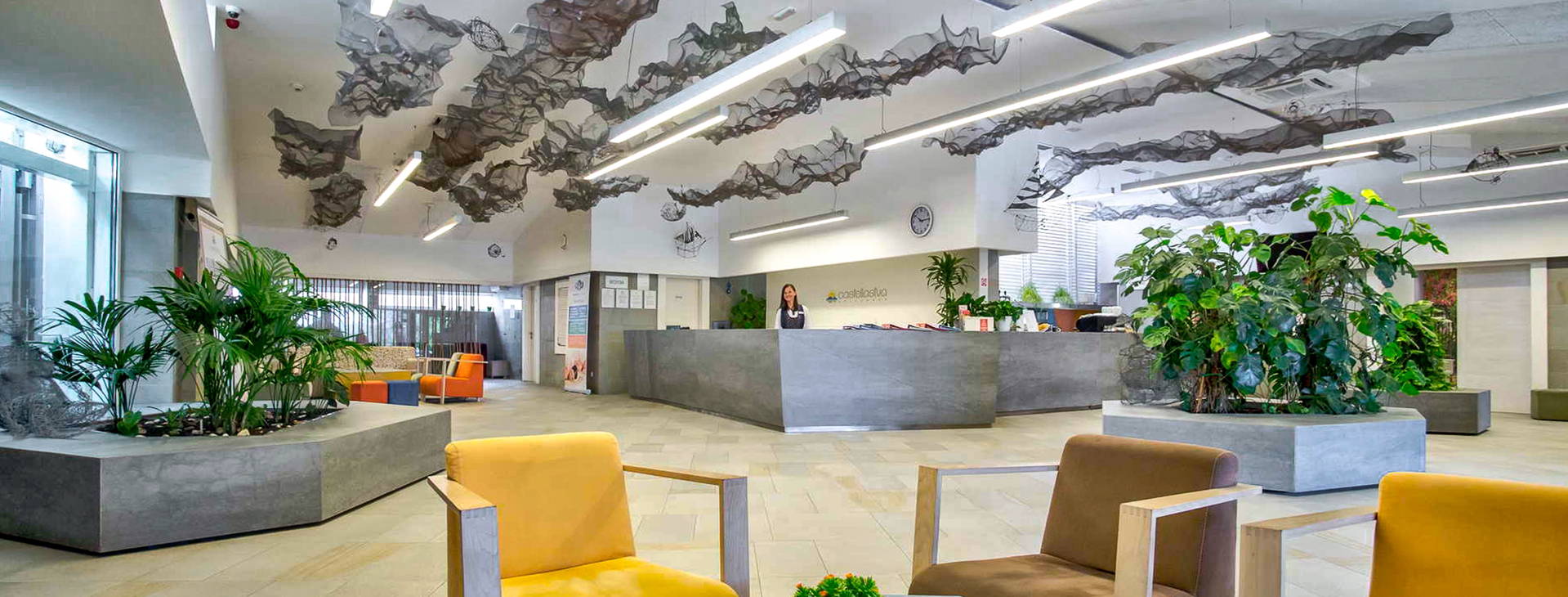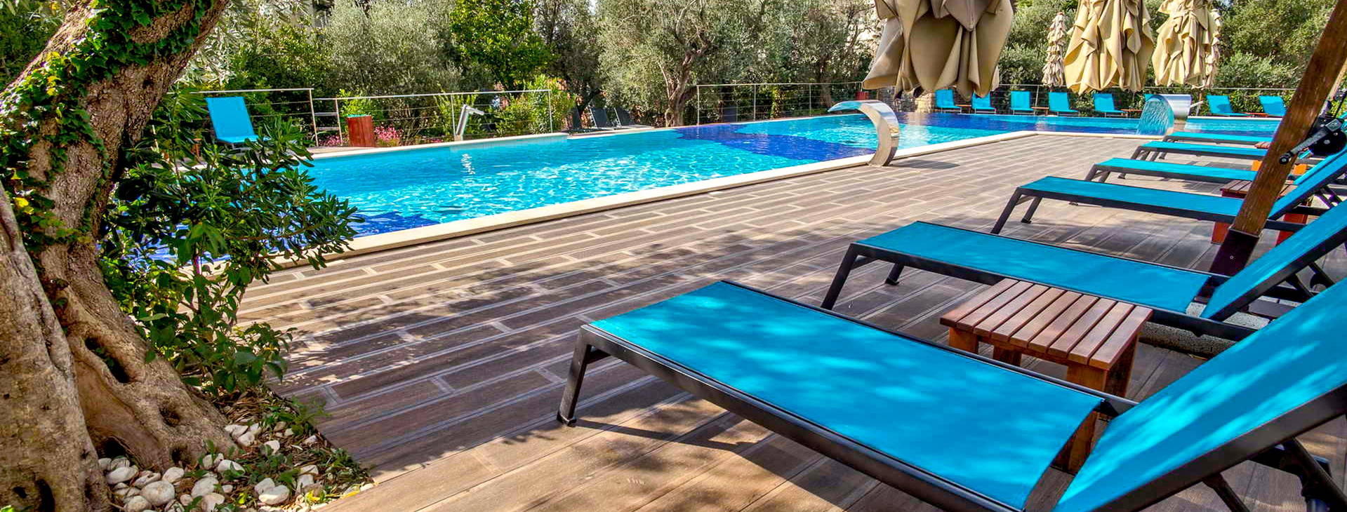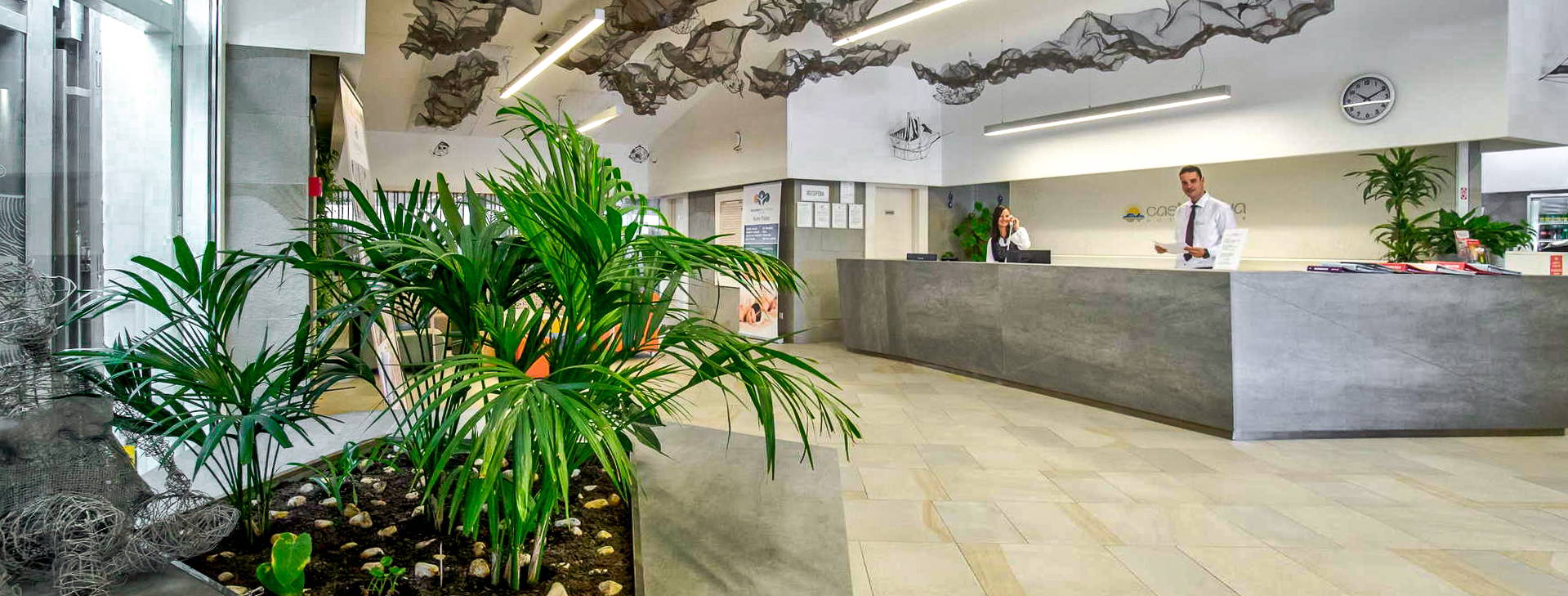 24-hodinová recepcia s lobby, reštaurácia s upravenou terasou, kaviareň so slnečnou terasou, výťahy, vonkajší bazén (sladká voda) s oddelenou plytkou časťou pre deti a vírivkou pri bazéne, bar pri bazéne, parkovisko.