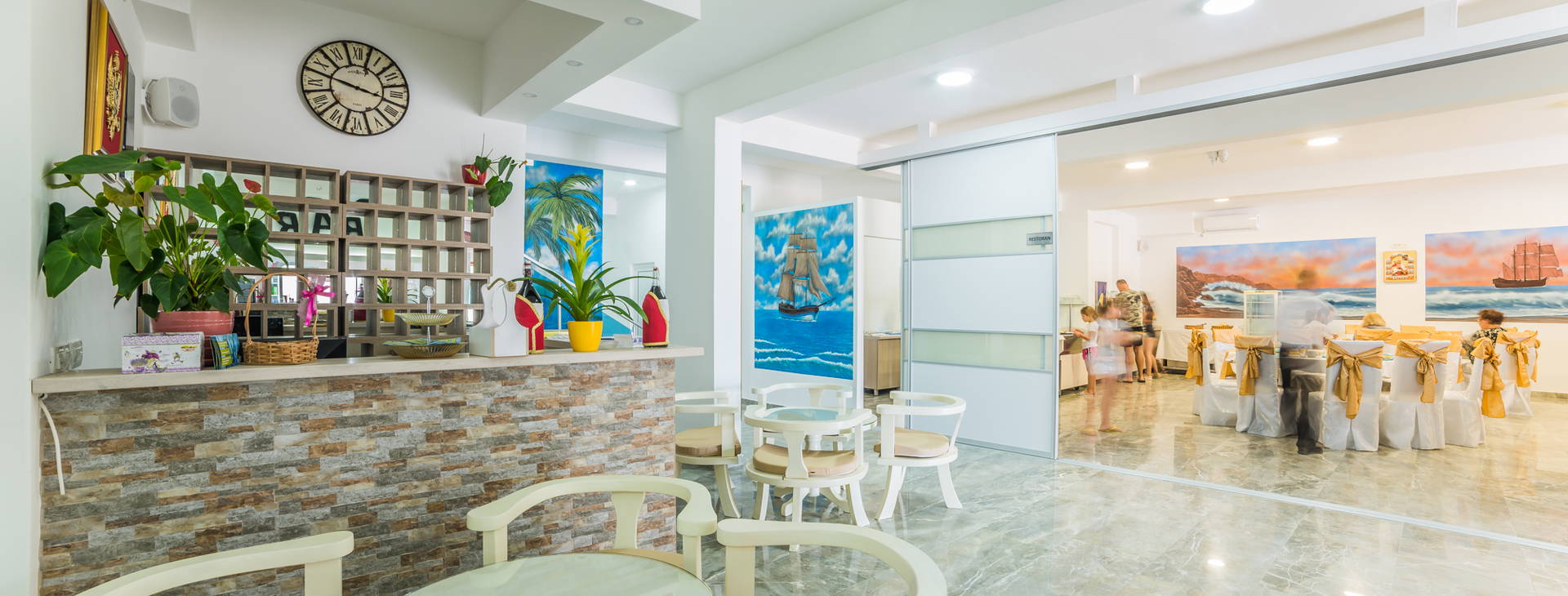 Hodinová recepcia, reštaurácia.