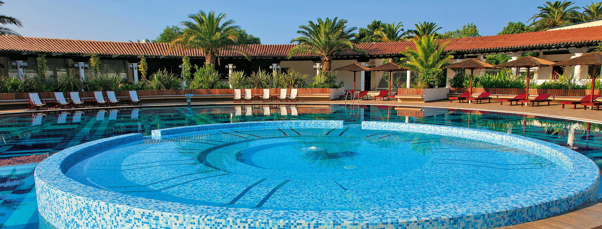 Štyrihodinová recepcia s lobby, TV miestnosť, obchody, reštaurácie, bary, kaviarne, hlavná reštaurácia s terasou (stoličky pre deti k dispozícii zdarma), 2 vonkajšie bazény s morskou vodou, detské brodítko, ležadlá a slnečníky zdarma, bez osušiek, hotelový bar a plážový bar, detské ihrisko, úschovňa batožiny. V hoteli je k dispozícii požičovňa áut (cca 50 EUR/deň), požičovňa skútrov (cca 25 EUR/deň), požičovňa bicyklov (cca 15 EUR/deň).