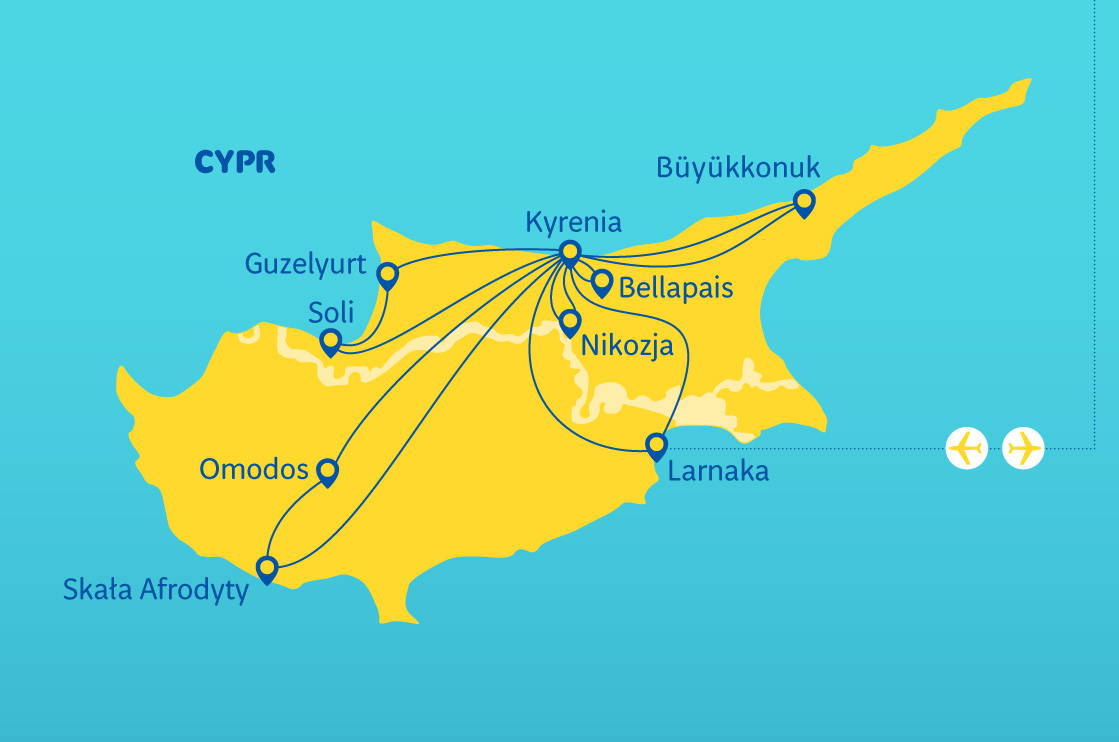 Cena zahrnuje: charterový let z Polska do Larnaky, letenku, transfery klimatizovaným autokarem nebo minibusem (podle počtu účastníků), ubytování (7 hotelových nocí zahájených během zpáteční cesty nebo 14 hotelových nocí za příplatek: zpáteční cesta + pobyt, stravování: během zpáteční části: (7 snídaní, služby polského zástupce při odbavení na letišti v Polsku, péče polsky mluvícího pilota, turistický program, jak je uvedeno výše, pojištění TU Europa (NNW, KL, asistence a zavazadla).