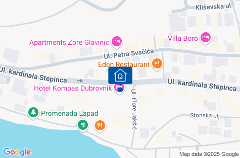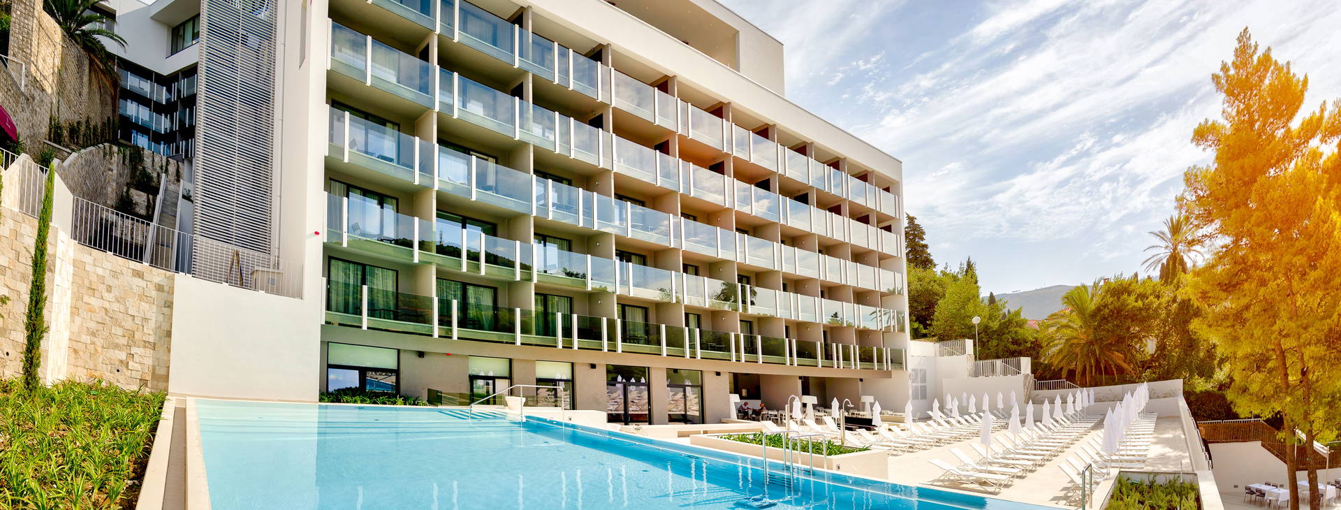 Hotel sa nachádza v malebnej zátoke Lapad s azúrovým výhľadom na Jadranské more, v blízkosti známej promenády s reštauráciami a obchodmi. Od Starého mesta je vzdialený 4 km. Transfer z letiska Dubrovník trvá približne 40 minút.