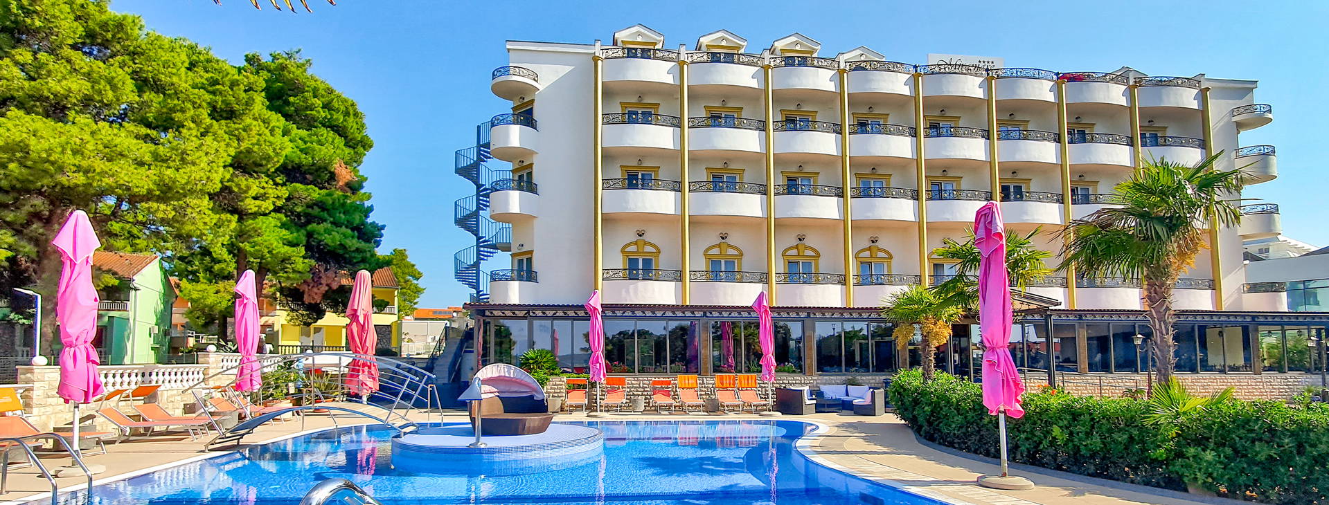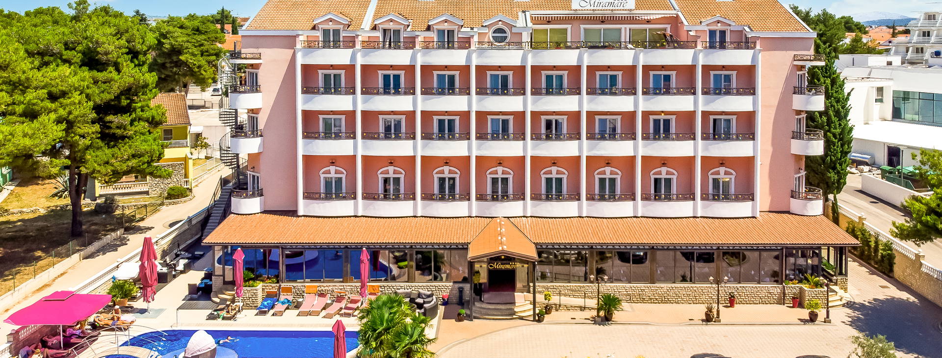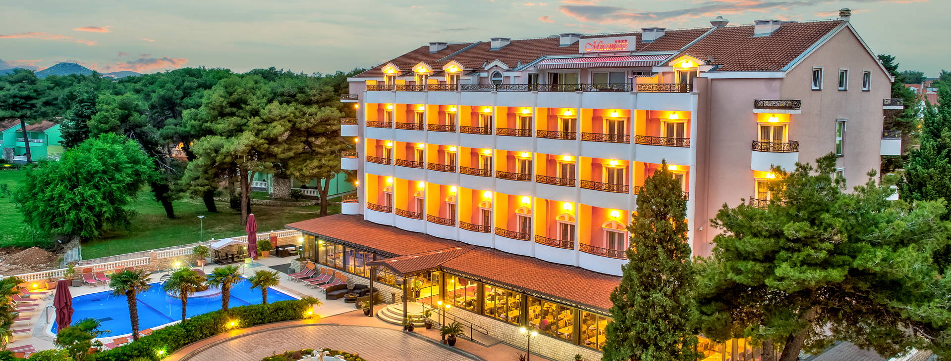 Hotel sa nachádza len niekoľko minút chôdze od pláže, v blízkosti centra a zároveň v pokojnej oblasti. Do centra mesta a na autobusovú zastávku je to približne 500 m (10 minút chôdze). Prístav vo Vodiciach - 600 m od hotela. Národný park Krka - cca 15 km. Letisko Zadar - cca 65km.