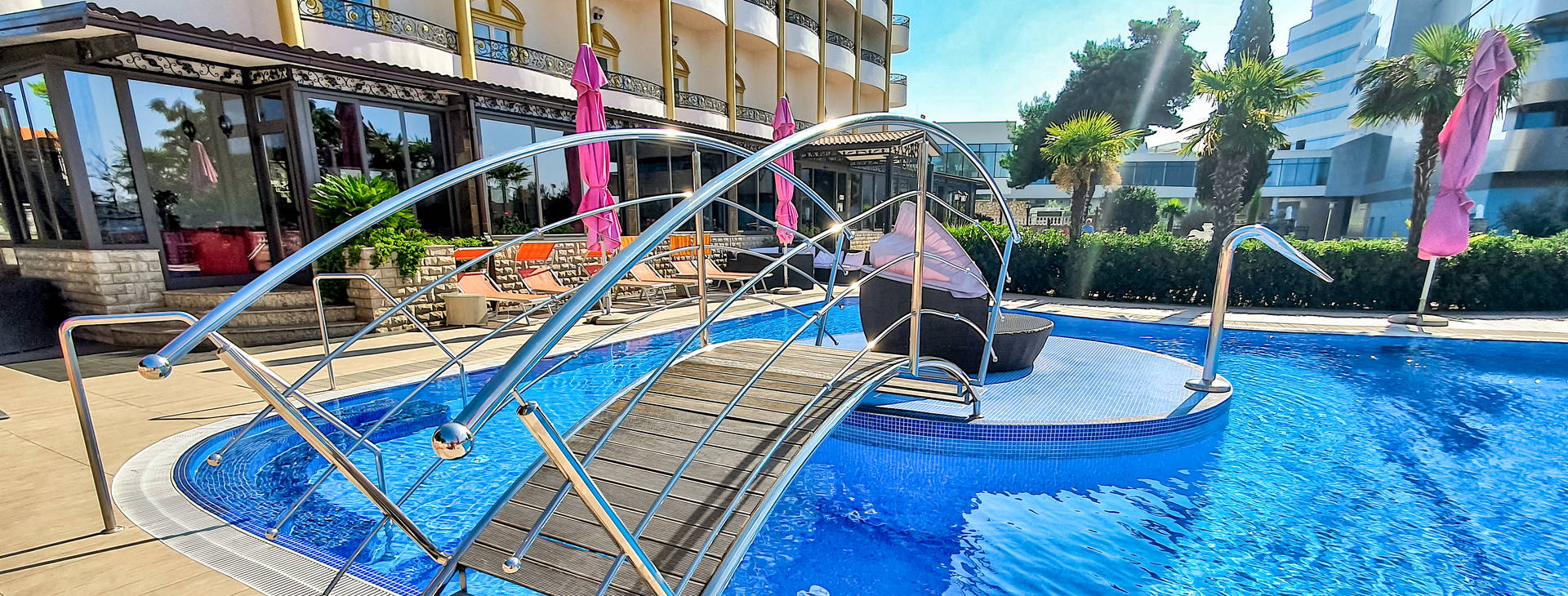 .Hotel má vonkajší bazén so slnečnou terasou a ležadlami. Hostia môžu využívať fitnescentrum s telocvičňou za príplatok cca. 4EUR/osoba/deň. Večer si môžete v bare vychutnať živú hudbu. Za príplatok sú k dispozícii masáže.