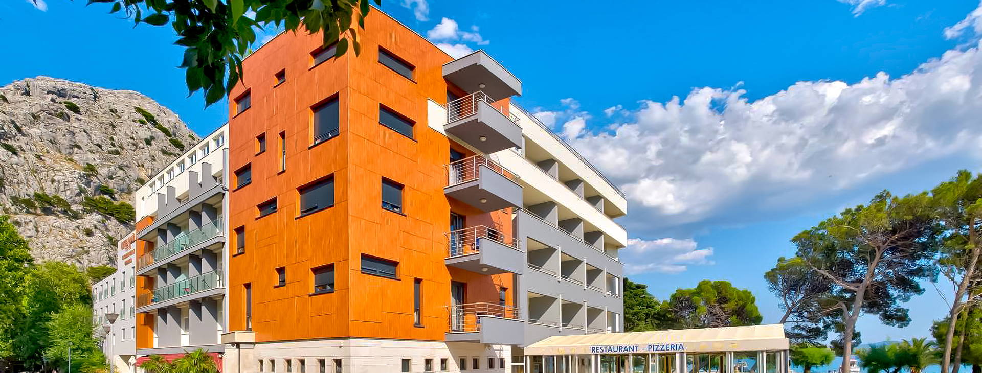 Trojposchodový hotel sa nachádza v samom centre Omišu, vedľa hotela je promenáda vedúca pozdĺž pobrežia do starého mesta. V meste sa nachádza množstvo barov, reštaurácií, štýlových konob, obchodov, kultúrnych centier atď. V okolí hotela je veľa zelene, krásny výhľad na horský masív Biokovo. Transfer z letiska Zadar do Omiša trvá približne 2,5 hodiny, transfer z letiska Dubrovník do Omiša trvá približne 4 hodiny.