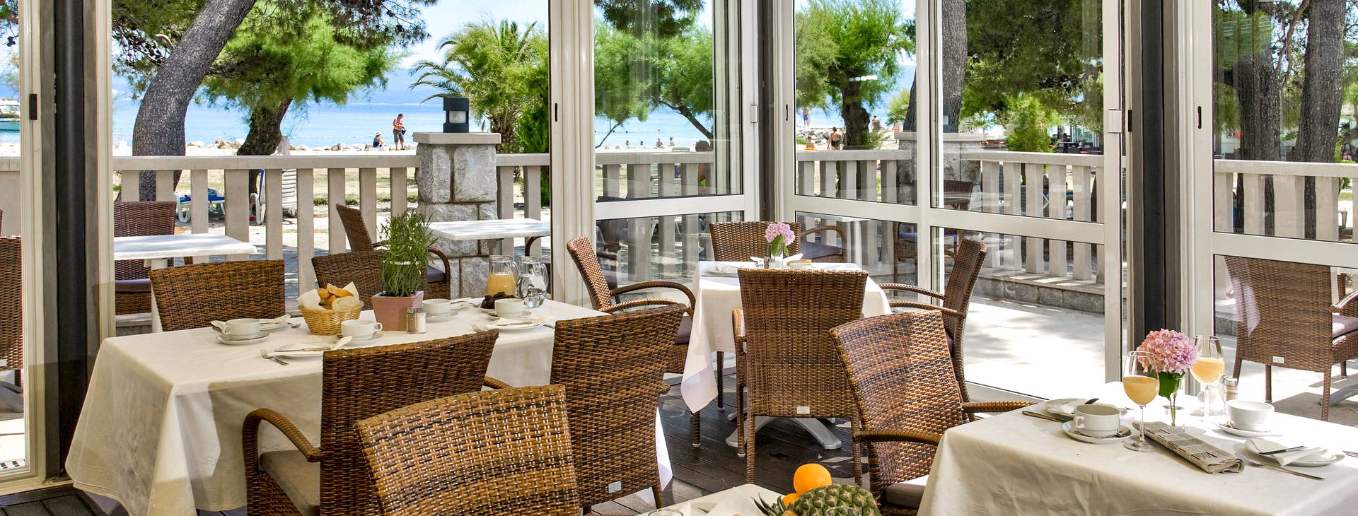 Raňajky a večere formou bufetu (bohatý výber jedál dalmatínskej a medzinárodnej kuchyne).