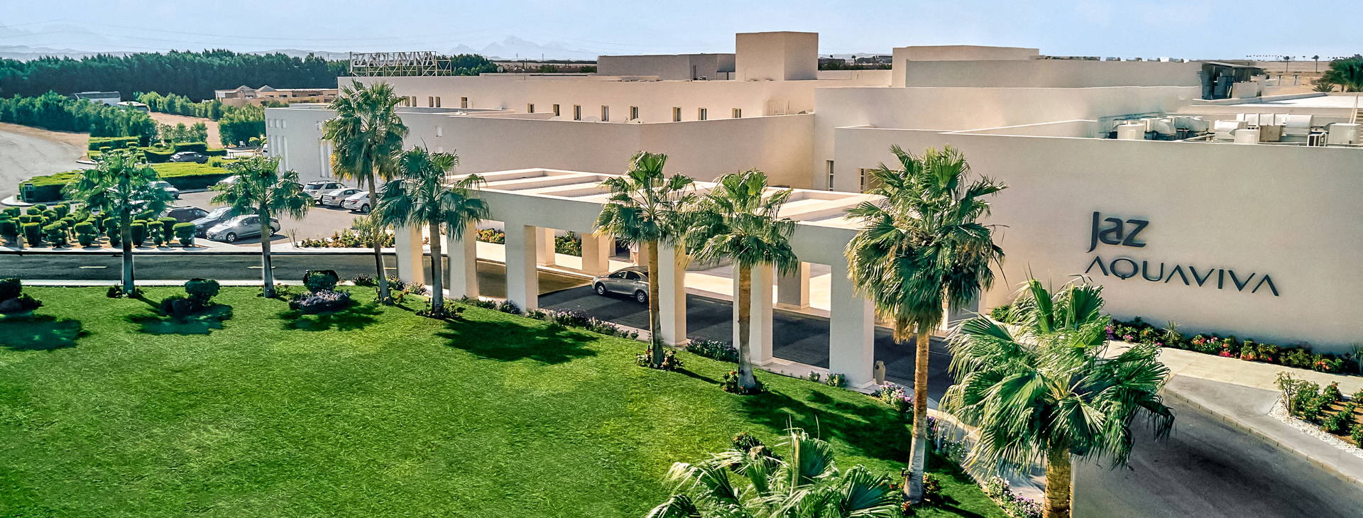 aj moderný hotel Jaz Aquaviva s najväčším aquaparkom v Egypte! Hotel postavený v roku 2015 pozostáva z hlavnej budovy a štyroch 2-3 poschodových budov. Hotel Jaz Aquaviva sa nachádza približne 30 km od letiska Hurghada.