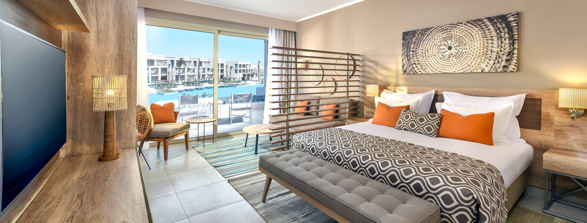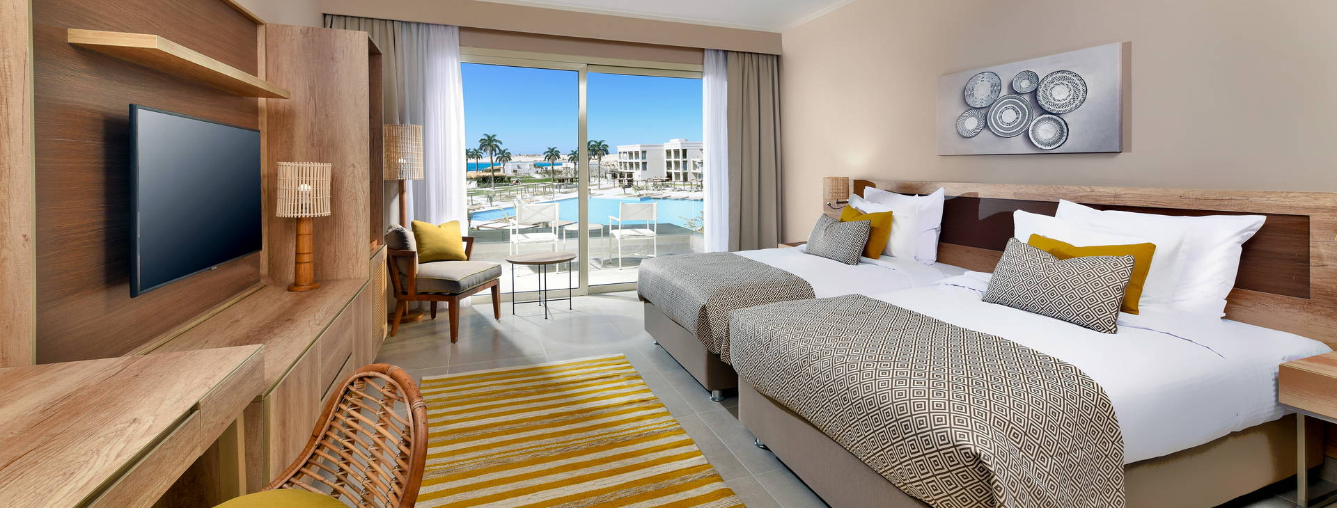 .Hotel sa nachádza priamo na súkromnej piesočnatej pláži. Ležadlá, slnečníky a plážové osušky sú zahrnuté v cene.