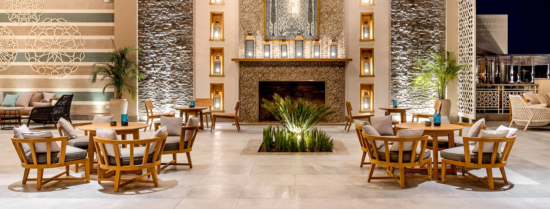 Hosťom je k dispozícii celý rad možností stravovania: hlavná reštaurácia Kahramana (bufetové jedlá), 2 reštaurácie a la carte: Benisuma (japonská a ázijská kuchyňa), Arabesque (orientálna a libanonská kuchyňa), reštaurácia na pláži a reštaurácia pri bazéne, ktorá ponúka obedové a večerné bufety, lobby bar (otvorený 24 hodín) a bar pri bazéne a shisha bar.