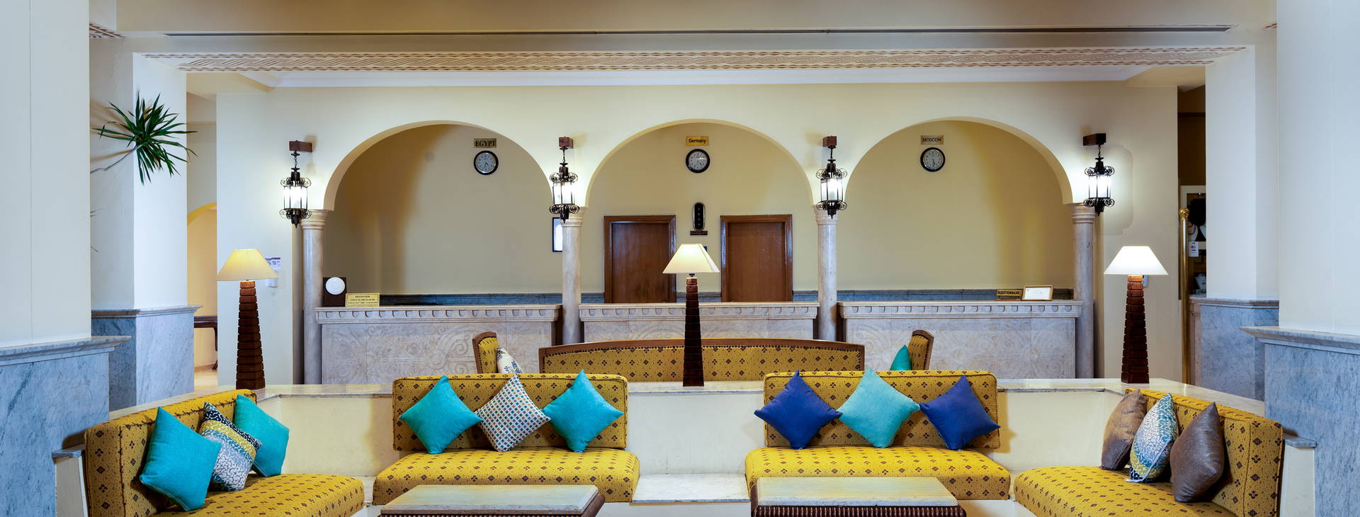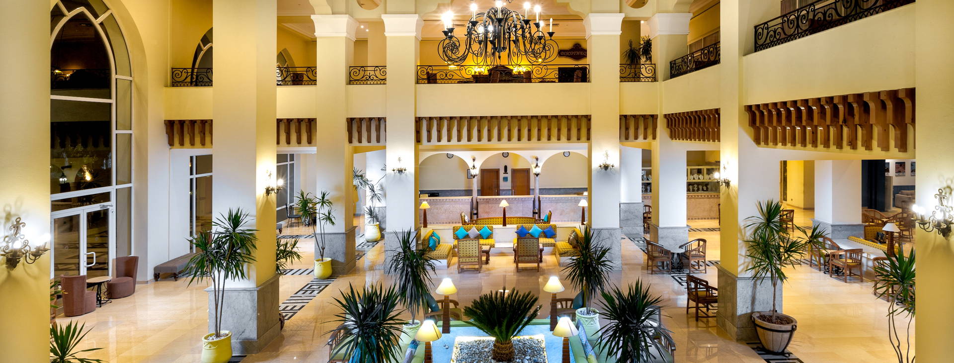Prevádzka s 24-hodinovou recepciou, priestranná vstupná hala, 3 reštaurácie: hlavná reštaurácia (podávajúca raňajky a večere), Makadi Beach Art Deco pri pláži a a'la carte Oriental Grill House a Sea Treasure Fish na pláži (za príplatok). Okrem toho bary v lobby, pri bazéne a na pláži, ako aj sladkovodný bazén a detský bazén (ležadlá, slnečníky a osušky pri bazéne k dispozícii zdarma). Práčovňa, kaderníctvo a opatrovanie detí sú k dispozícii za príplatok. Hostia hotela Labranda Club Makadi majú tiež priamy prístup na promenádu Labranda, ktorá je spoločná so susedným hotelom Labranda Royal Makadi. Na promenáde sa nachádza niekoľko reštaurácií (za poplatok): grécka Taverna Paros, kubánska reštaurácia Pequena Habana, americký Rock & Roll Burger House, čínska Yum Asian Kitchen & Bar, kaviareň Cairo a zmrzlináreň Giardino delle Rose.