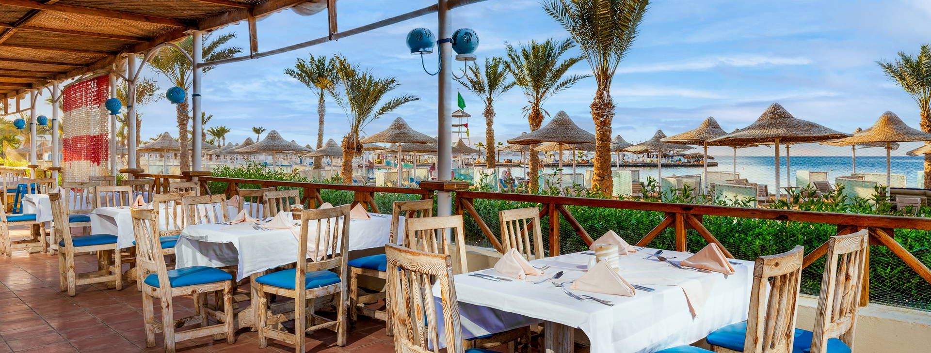 All inclusive: raňajky (6:30-11:00) formou bufetu v hlavnej reštaurácii, obedy (12:00-15:00) formou bufetu v reštaurácii Makadi Beach Art Deco a večere formou bufetu alebo a'la carte v reštaurácii podľa vášho výberu (hlavná reštaurácia, Makadi Beach Art Deco alebo Oriental Grill House - nutná rezervácia vopred). Počas dňa káva a koláč (10:00-12:00), občerstvenie (15:00-17:00) a vybrané miestne alkoholické a nealkoholické nápoje v určených baroch (10:00-24:00, od 00:00-10:00 všetky nápoje za poplatok). Ponuka All Inclusive nezahŕňa čerstvo vylisované šťavy a dovážané alkoholické nápoje. Hotel si vyhradzuje právo na zmenu rozsahu služieb zahrnutých do formulky All Inclusive (napr. čas podávania).
