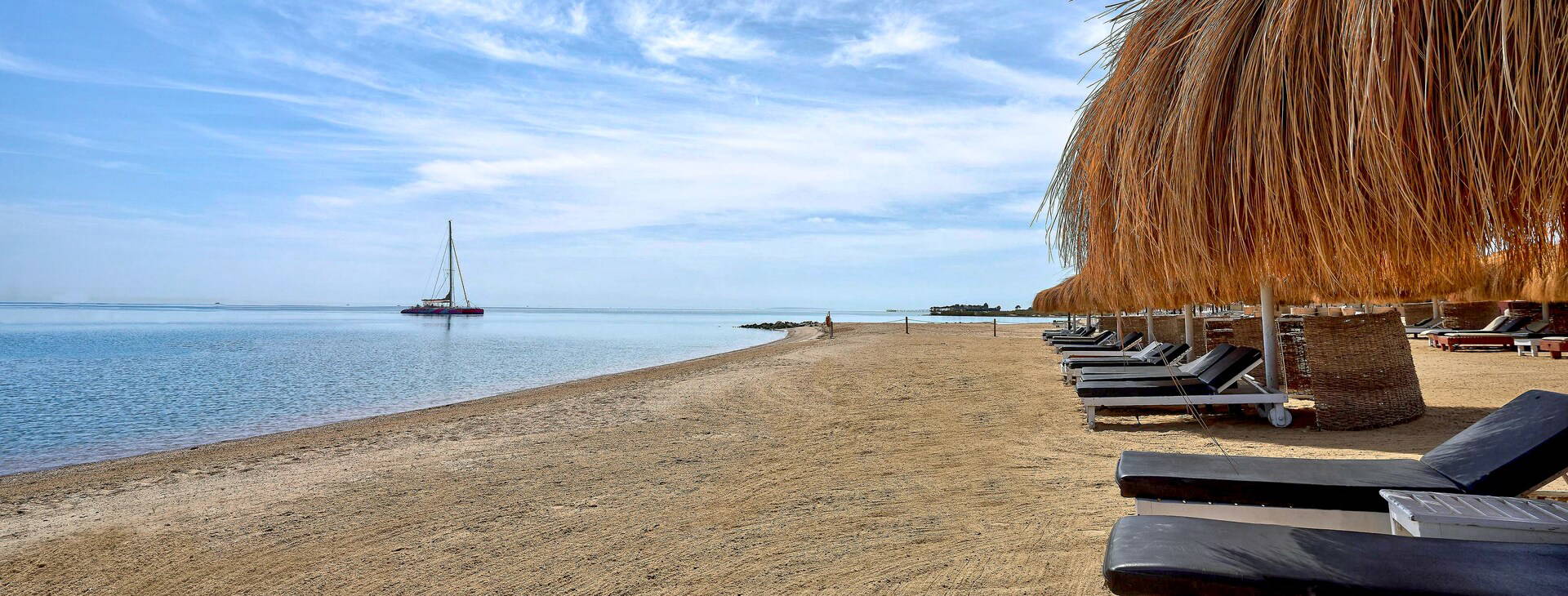 Komplex Tropitel Sahl Hasheesh se nachází přímo u široké, dlouhé písečné pláže. Hotelová pláž má vlastní přístav. Lehátka, slunečníky a plážové osušky jsou k dispozici zdarma.