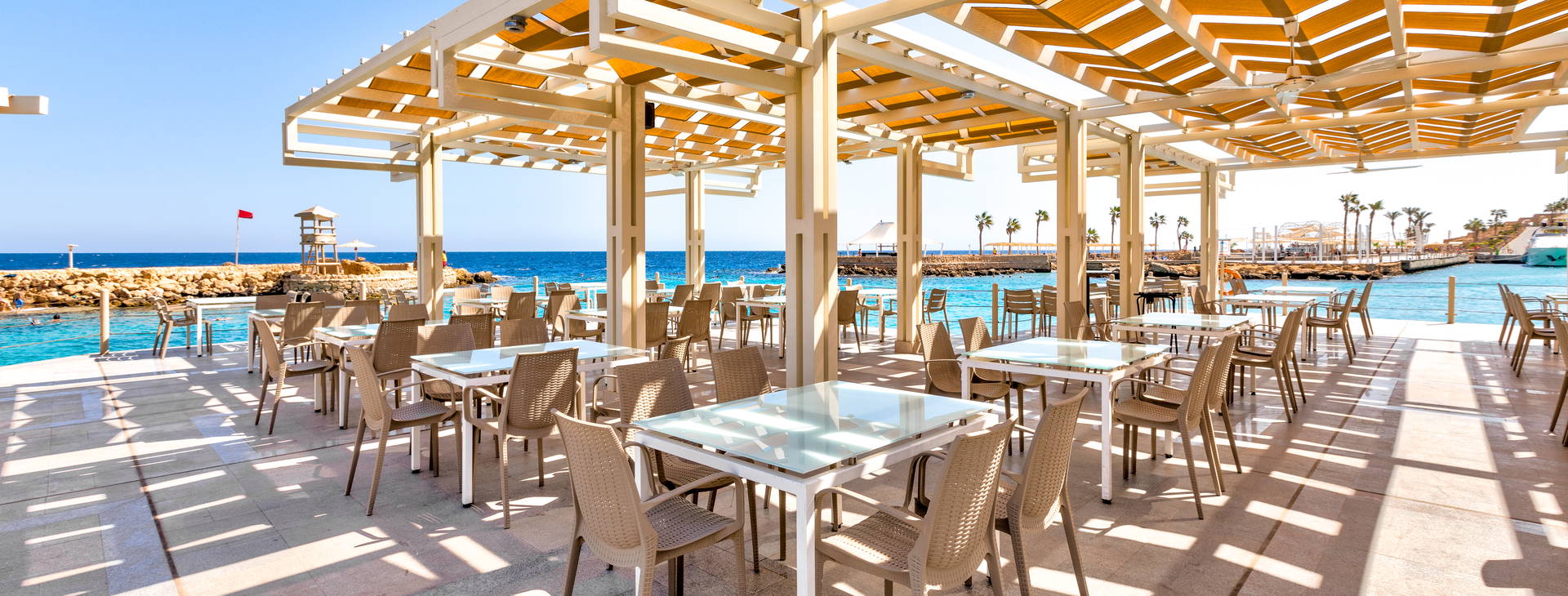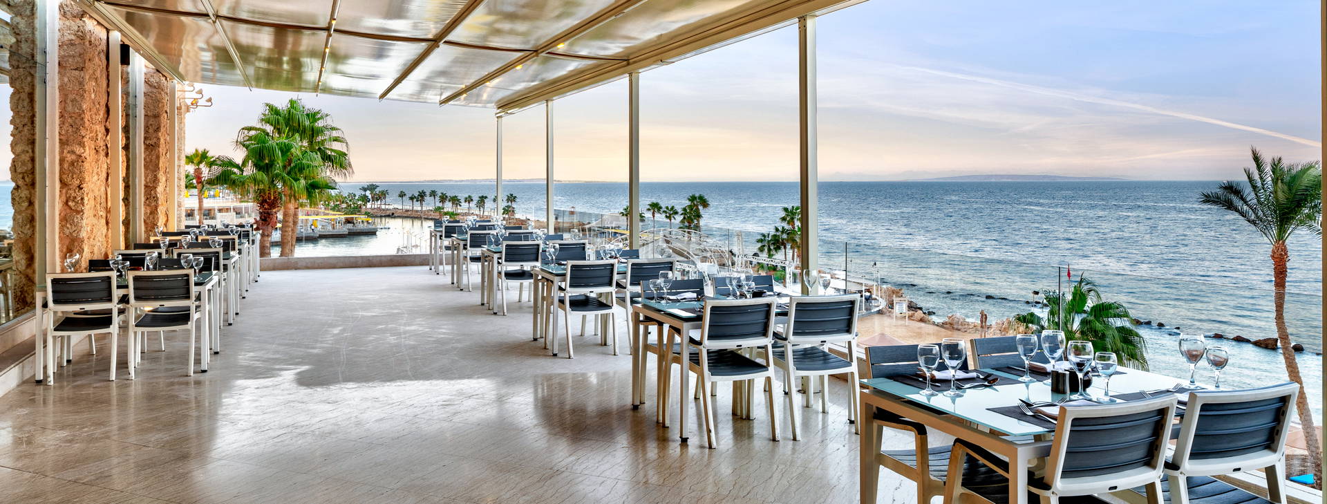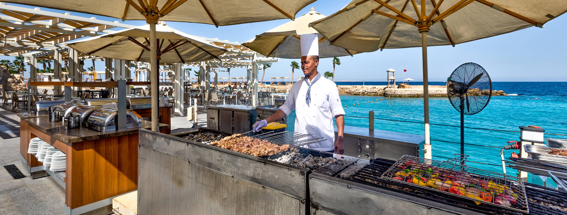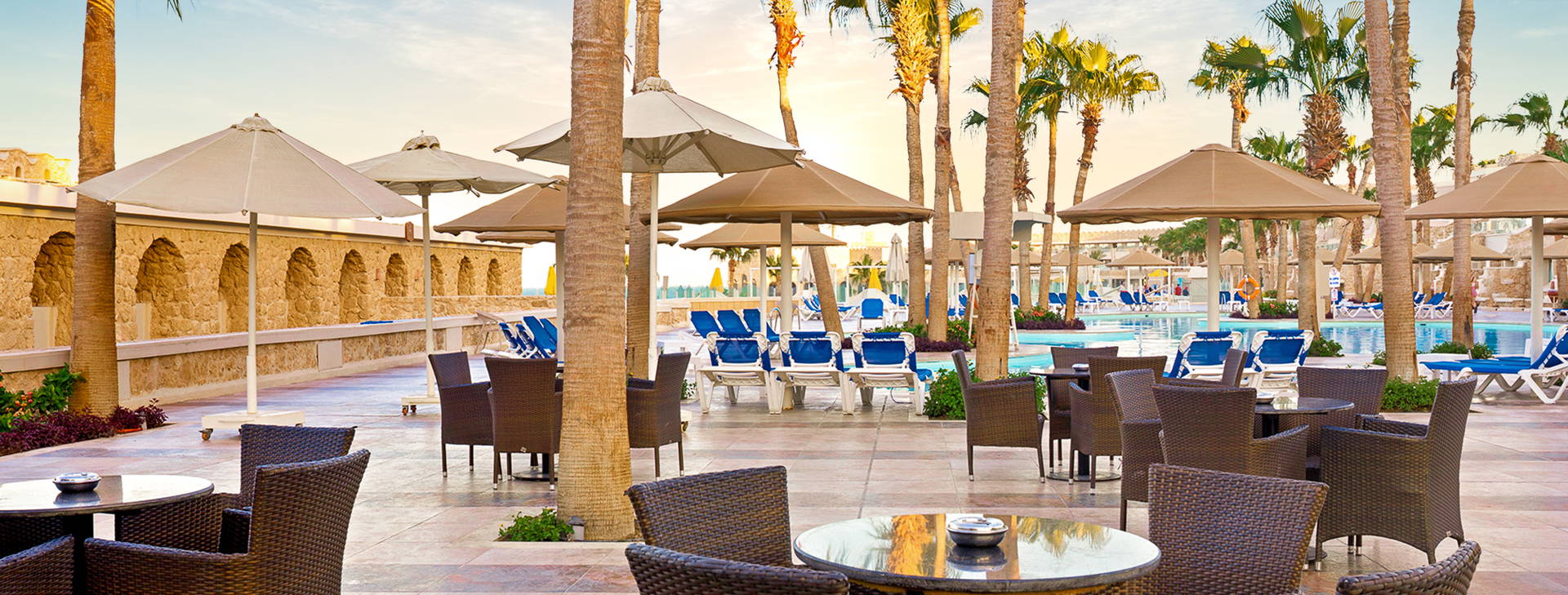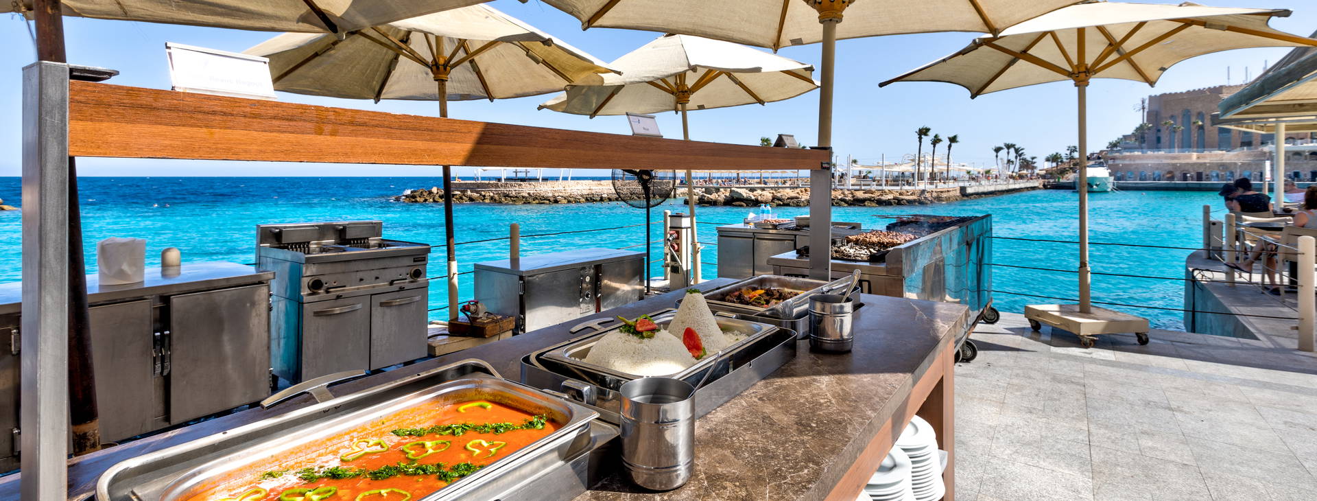 All inclusive zahŕňa: raňajky, večeru a nočné občerstvenie v reštaurácii "The Citadel", obed a popoludňajšie občerstvenie v reštaurácii "Harbour Inn". Večere sú možné aj v tematických reštauráciách (po predchádzajúcej rezervácii). Hotel ponúka miestne alkoholické (vrátane piva, vína - 10:00-2:00) a nealkoholické nápoje (vrátane vody, džúsov, kávy, čaju - k dispozícii 24 h). Lobby bar otvorený 24 hodín denne (nealkoholické nápoje 24 hodín denne, alkoholické nápoje od 10:00-2:00). V lobby bare sa podávajú aj kontinentálne raňajky od 5:00 do 7:00. Bary pri bazéne a na pláži fungujú od 10:00 do 17:00. Šiša bar (za poplatok) je otvorený od 18:00 do 24:00. Čerstvo vylisované džúsy a nápoje vo fľašiach nie sú zahrnuté vo variante all inclusive. V reštauráciách sa počas jedál vyžaduje formálne oblečenie. Otváracie hodiny barov závisia od ročného obdobia.