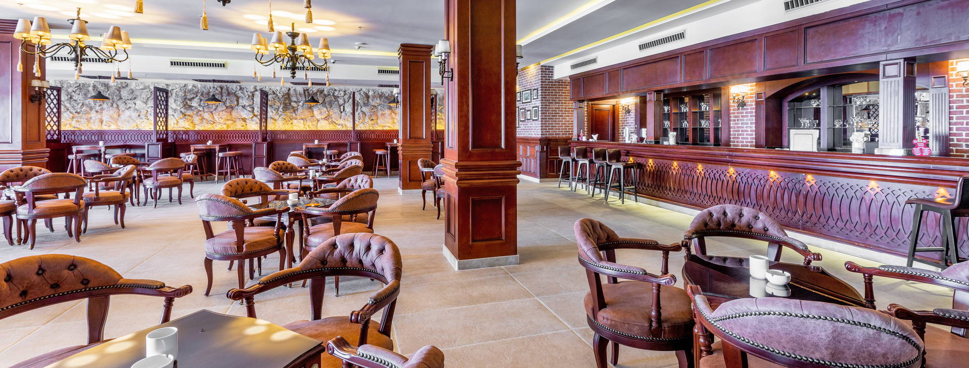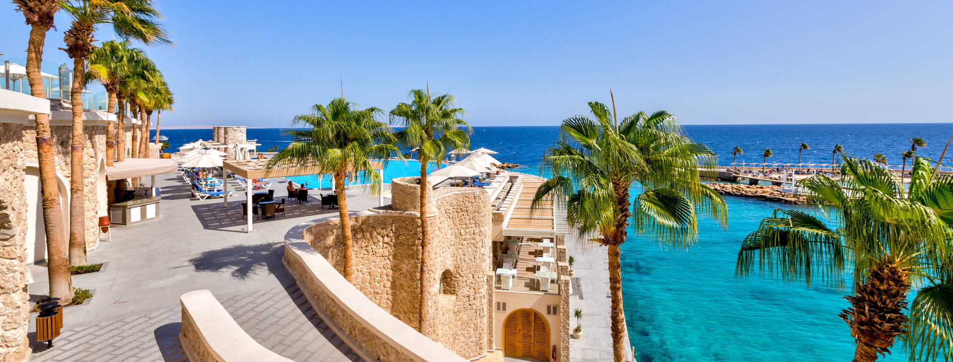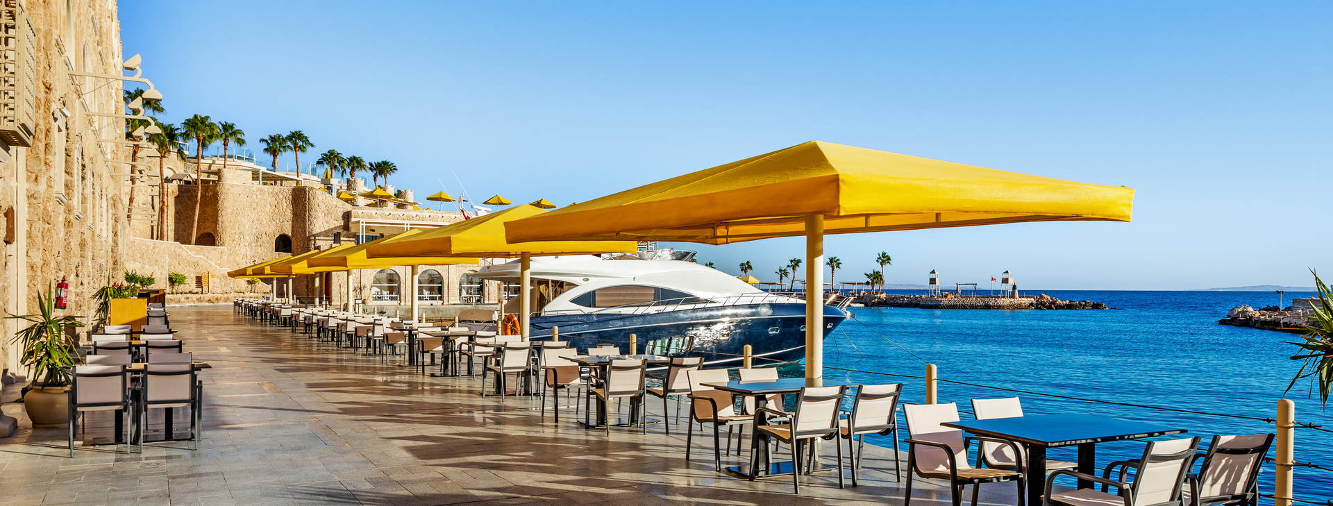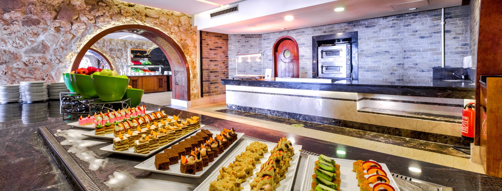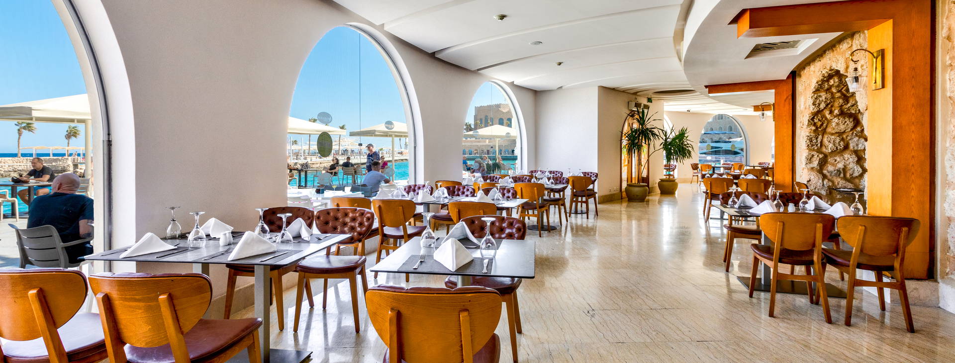 All inclusive zahŕňa: raňajky, večeru a nočné občerstvenie v reštaurácii "The Citadel", obed a popoludňajšie občerstvenie v reštaurácii "Harbour Inn". Večere sú možné aj v tematických reštauráciách (po predchádzajúcej rezervácii). Hotel ponúka miestne alkoholické (vrátane piva, vína - 10:00-2:00) a nealkoholické nápoje (vrátane vody, džúsov, kávy, čaju - k dispozícii 24 h). Lobby bar otvorený 24 hodín denne (nealkoholické nápoje 24 hodín denne, alkoholické nápoje od 10:00-2:00). V lobby bare sa podávajú aj kontinentálne raňajky od 5:00 do 7:00. Bary pri bazéne a na pláži fungujú od 10:00 do 17:00. Šiša bar (za poplatok) je otvorený od 18:00 do 24:00. Čerstvo vylisované džúsy a nápoje vo fľašiach nie sú zahrnuté vo variante all inclusive. V reštauráciách sa počas jedál vyžaduje formálne oblečenie. Otváracie hodiny barov závisia od ročného obdobia.