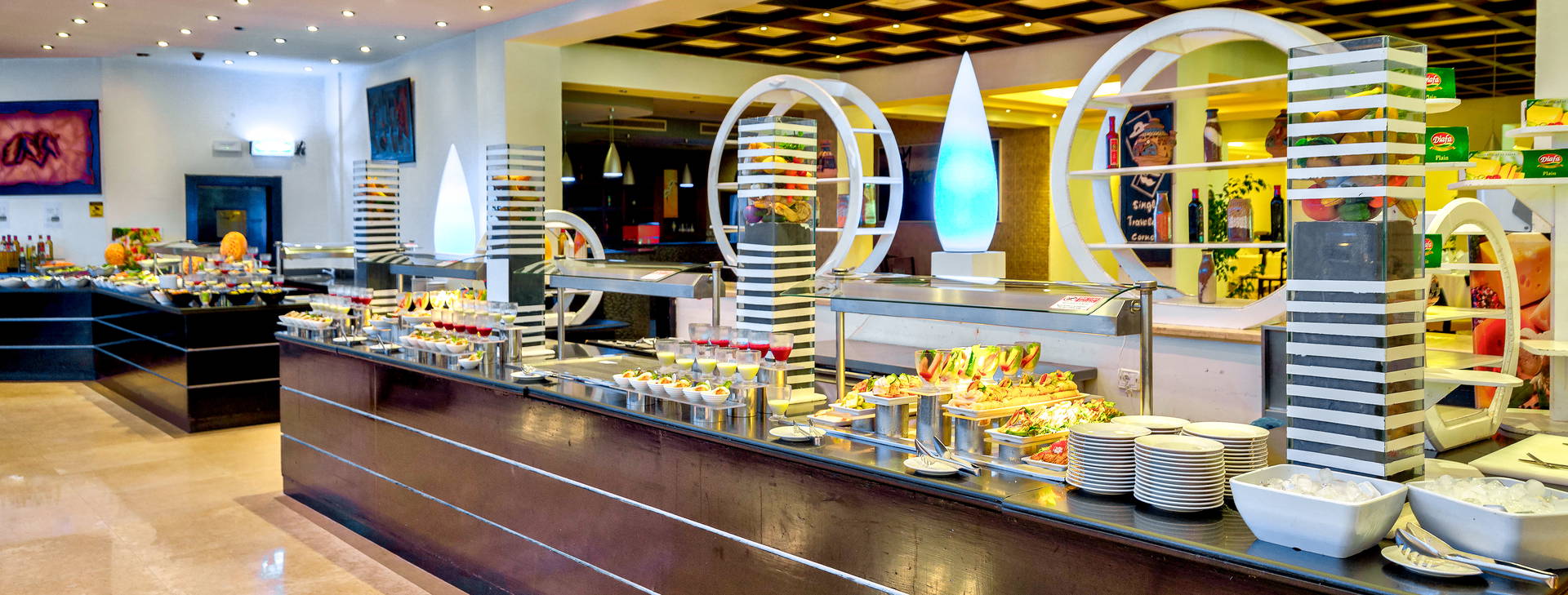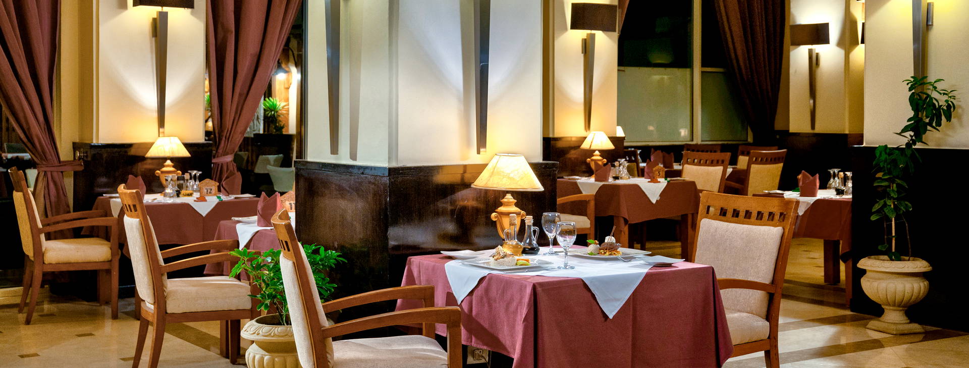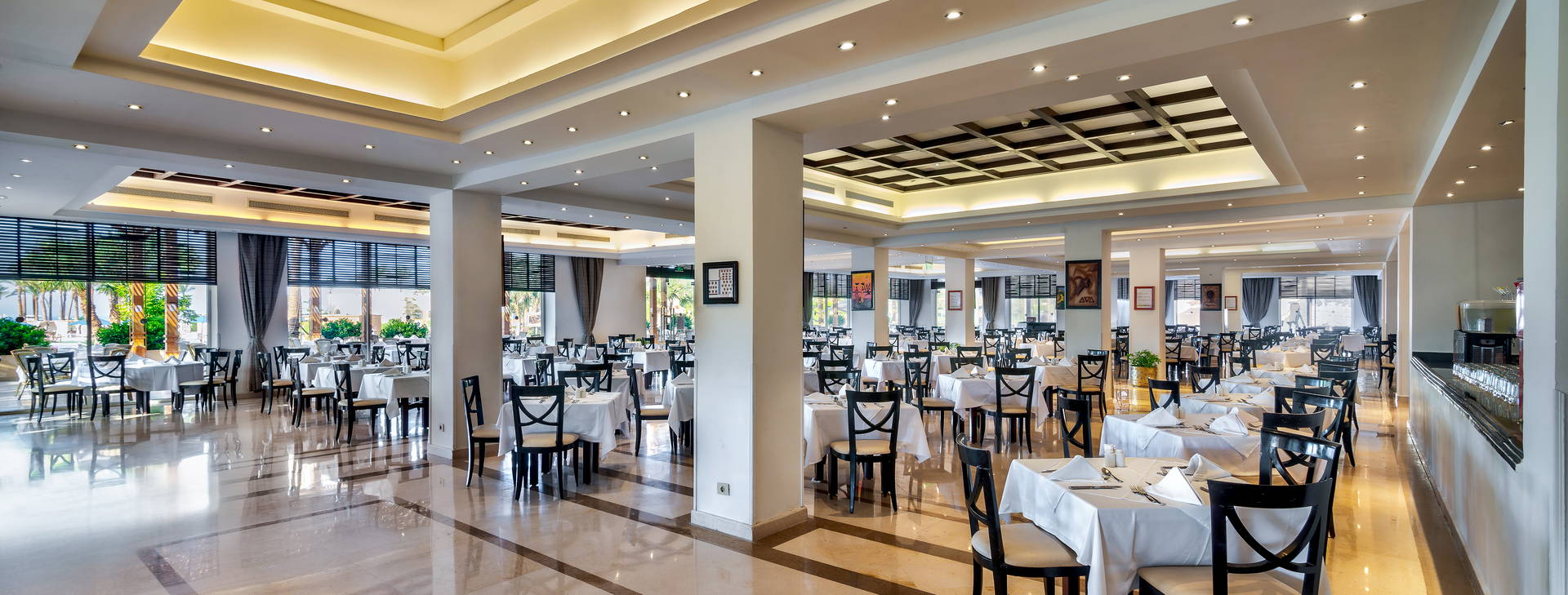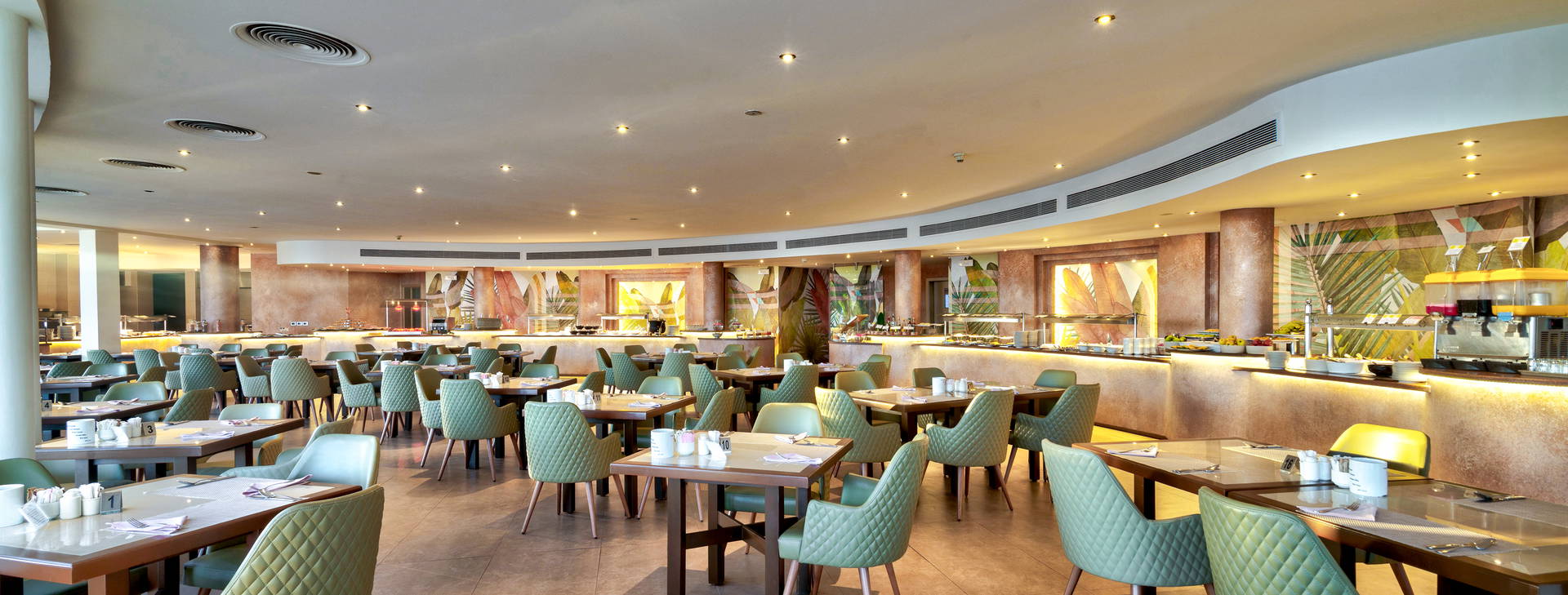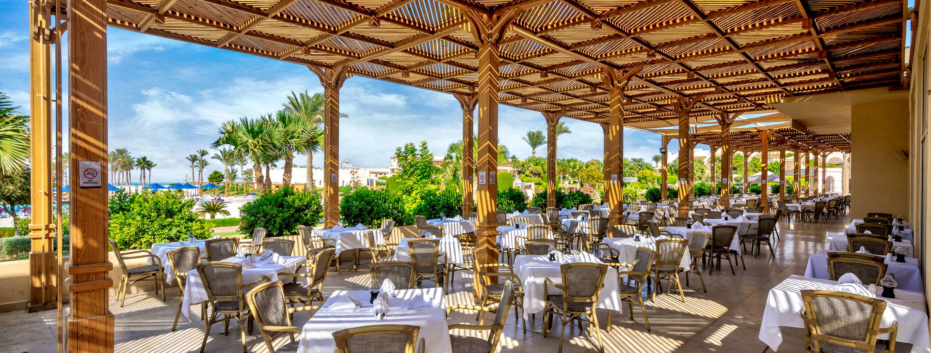 .All Inclusive vrátane troch jedál formou bufetu. Miestne alkoholické a nealkoholické nápoje 24 hodín. Raňajky formou bufetu od 7:00 do 10:00, obed od 12:30 do 14:00, večera od 19:00 do 21:30. Možnosť rezervácie večere v reštaurácii a la carte "Vista Mare". Na večeru sa vyžaduje vhodné oblečenie. Receptúra All Inclusive nezahŕňa dovážané alkoholické nápoje, čerstvo vylisované šťavy, nápoje vo fľašiach a plechovkách a minibar.