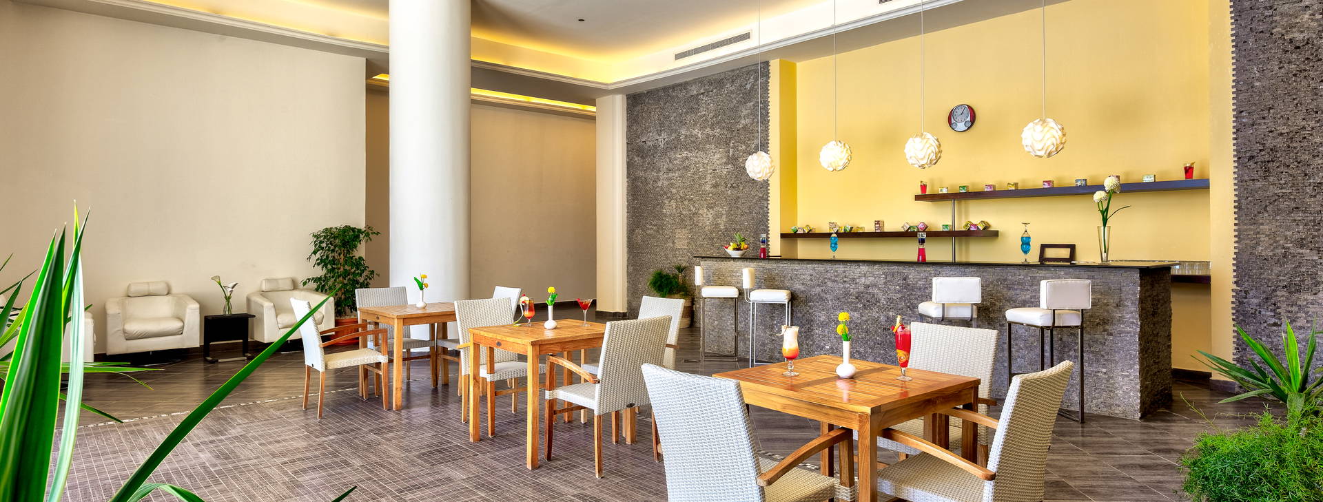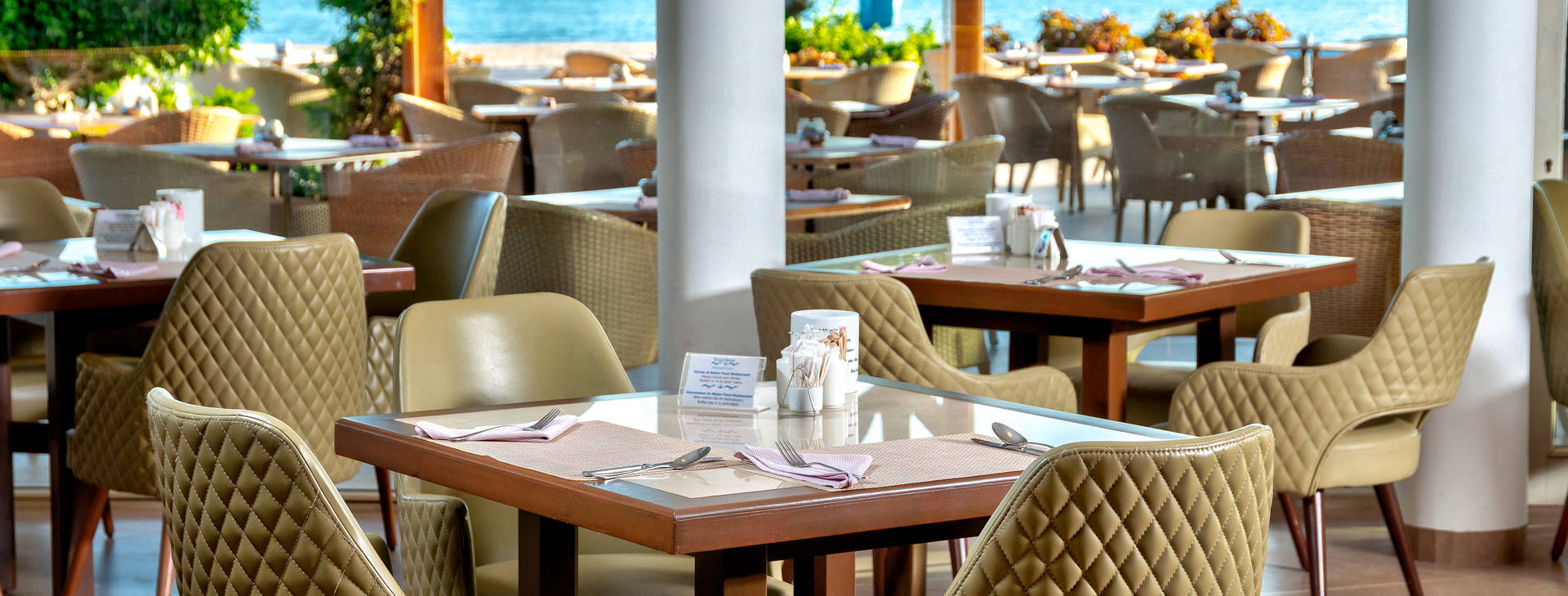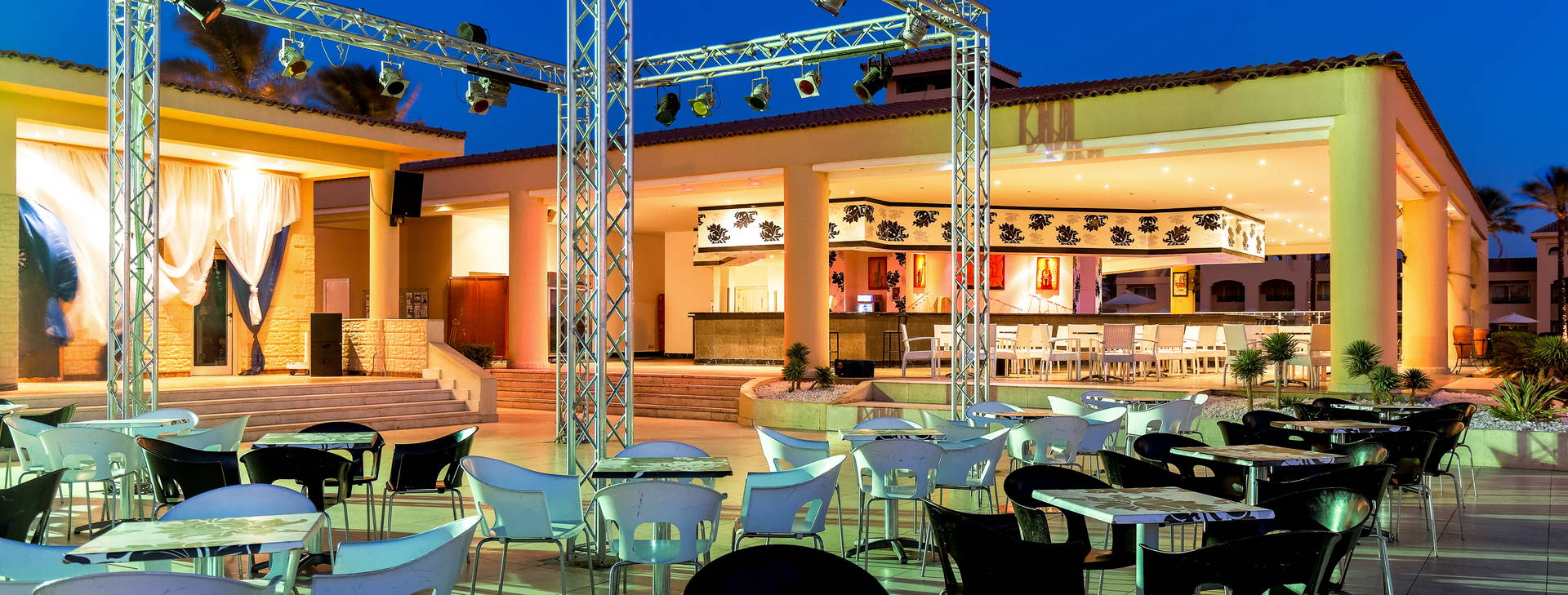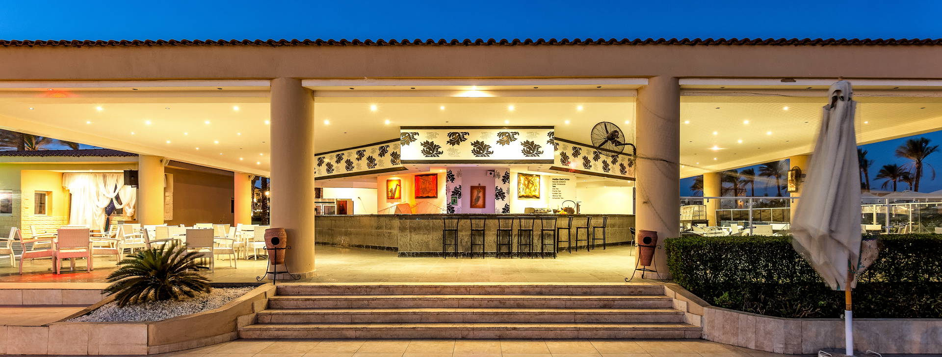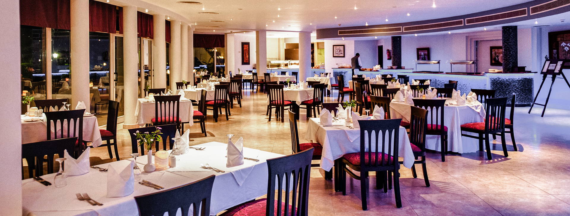 .All Inclusive vrátane troch jedál formou bufetu. Miestne alkoholické a nealkoholické nápoje 24 hodín. Raňajky formou bufetu od 7:00 do 10:00, obed od 12:30 do 14:00, večera od 19:00 do 21:30. Možnosť rezervácie večere v reštaurácii a la carte "Vista Mare". Na večeru sa vyžaduje vhodné oblečenie. Receptúra All Inclusive nezahŕňa dovážané alkoholické nápoje, čerstvo vylisované šťavy, nápoje vo fľašiach a plechovkách a minibar.