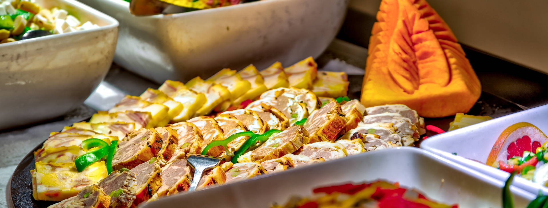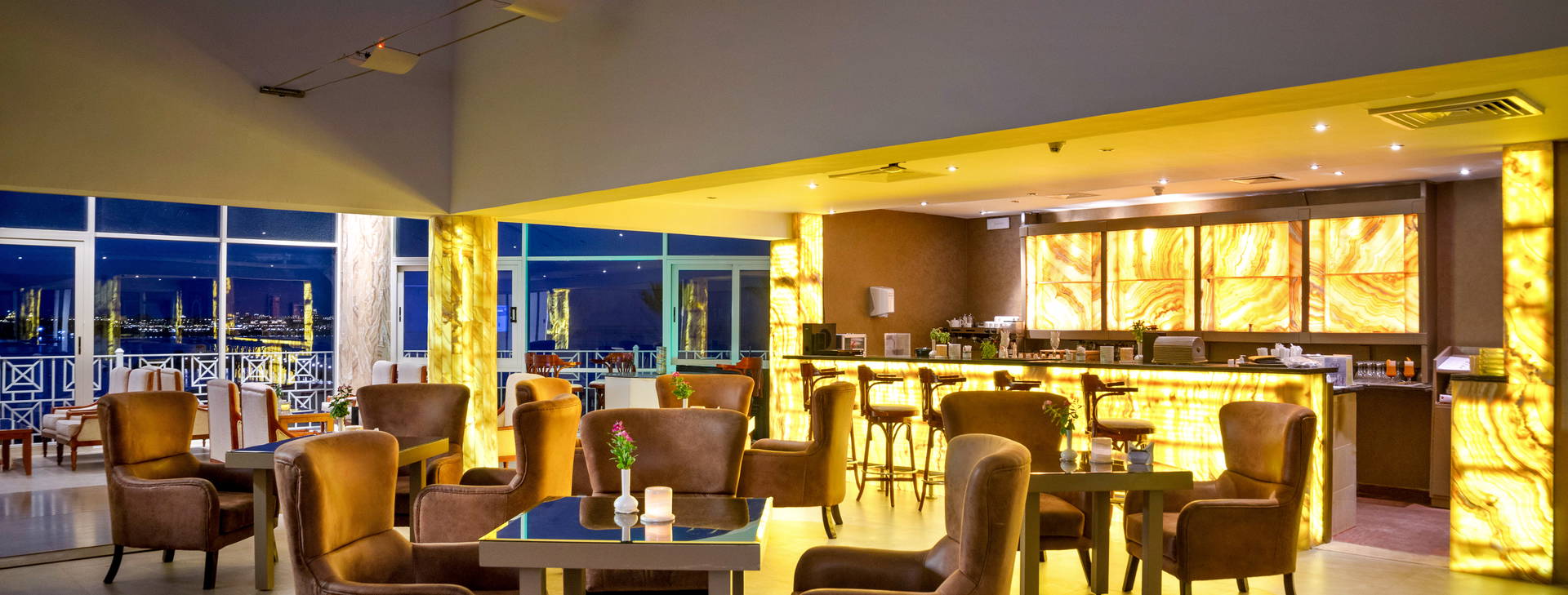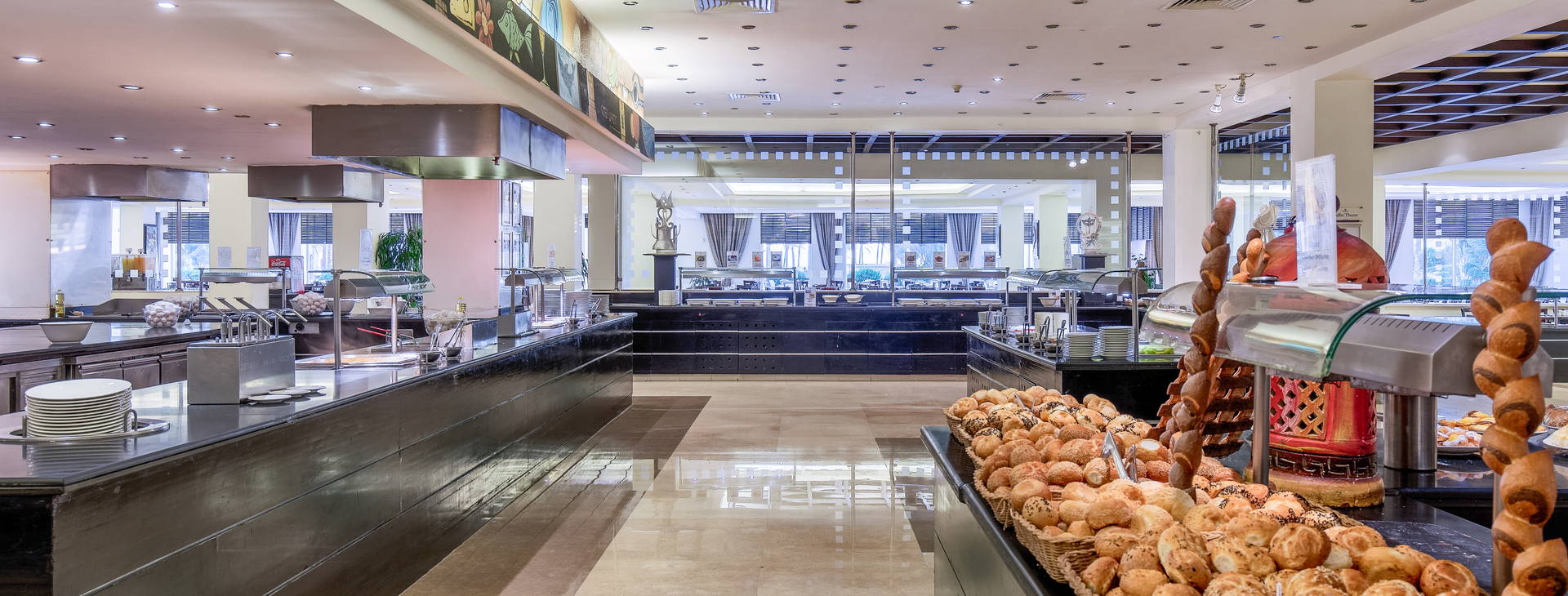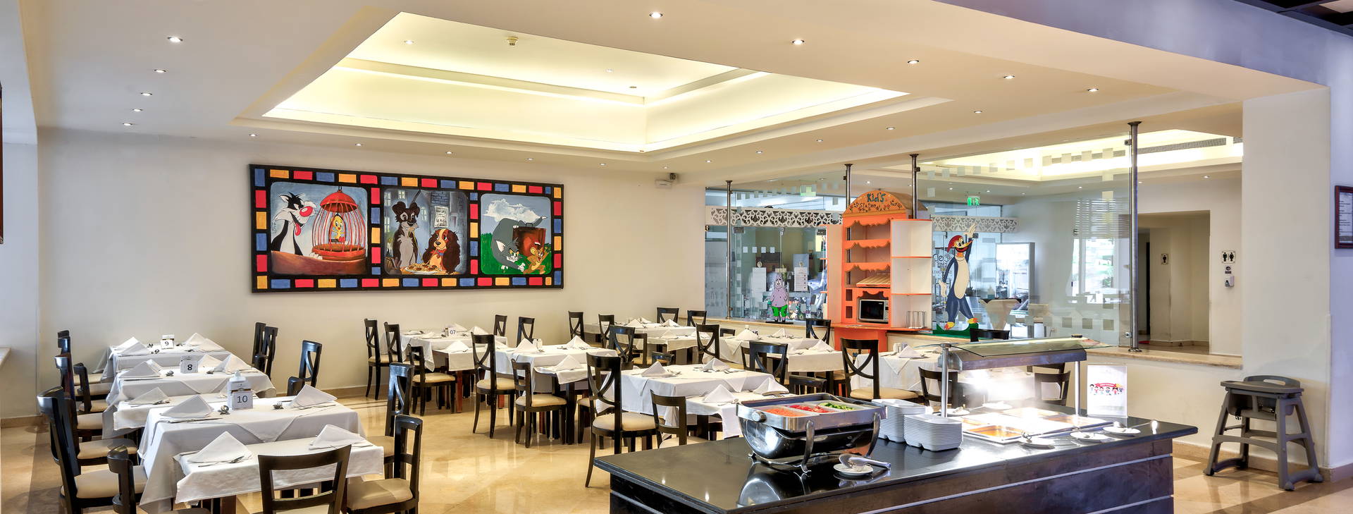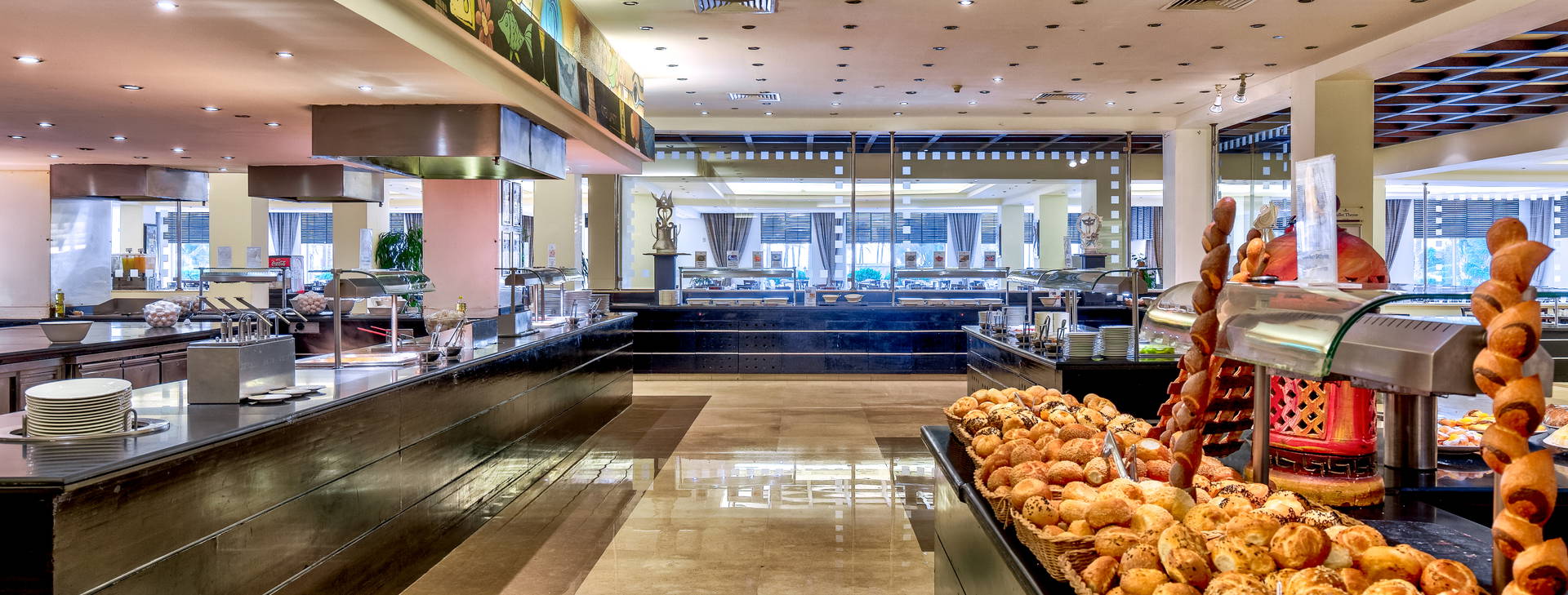 .All Inclusive vrátane troch jedál formou bufetu. Miestne alkoholické a nealkoholické nápoje 24 hodín. Raňajky formou bufetu od 7:00 do 10:00, obed od 12:30 do 14:00, večera od 19:00 do 21:30. Možnosť rezervácie večere v reštaurácii a la carte "Vista Mare". Na večeru sa vyžaduje vhodné oblečenie. Receptúra All Inclusive nezahŕňa dovážané alkoholické nápoje, čerstvo vylisované šťavy, nápoje vo fľašiach a plechovkách a minibar.